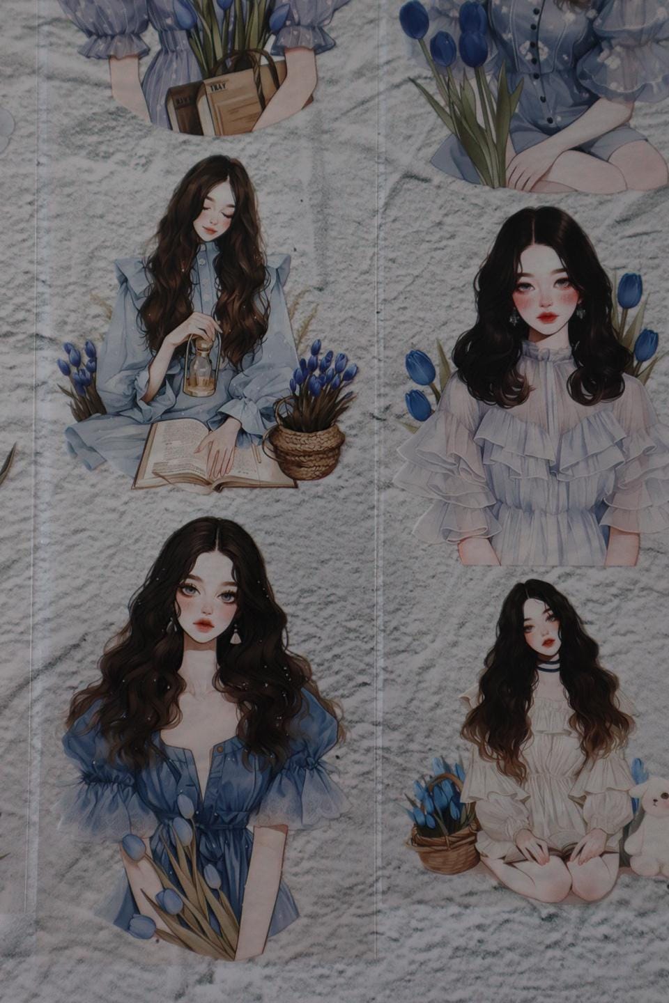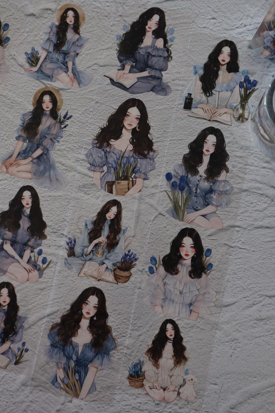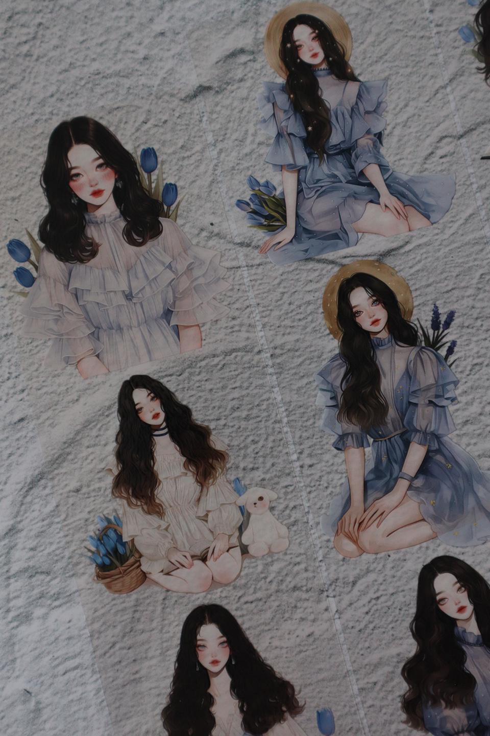 OURTIME) Blue Tulip Pet tape - 3D Glossy Printing 200cm(100cm x 2cut)