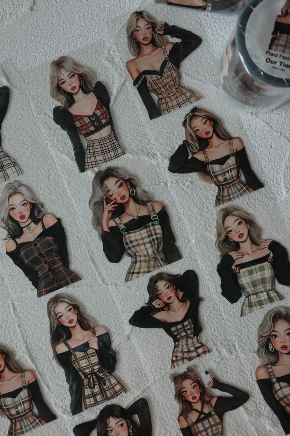 OURTIME) Plaid Fashion Pet tape - 3D Glossy Printing 200cm(100cm x 2cut)