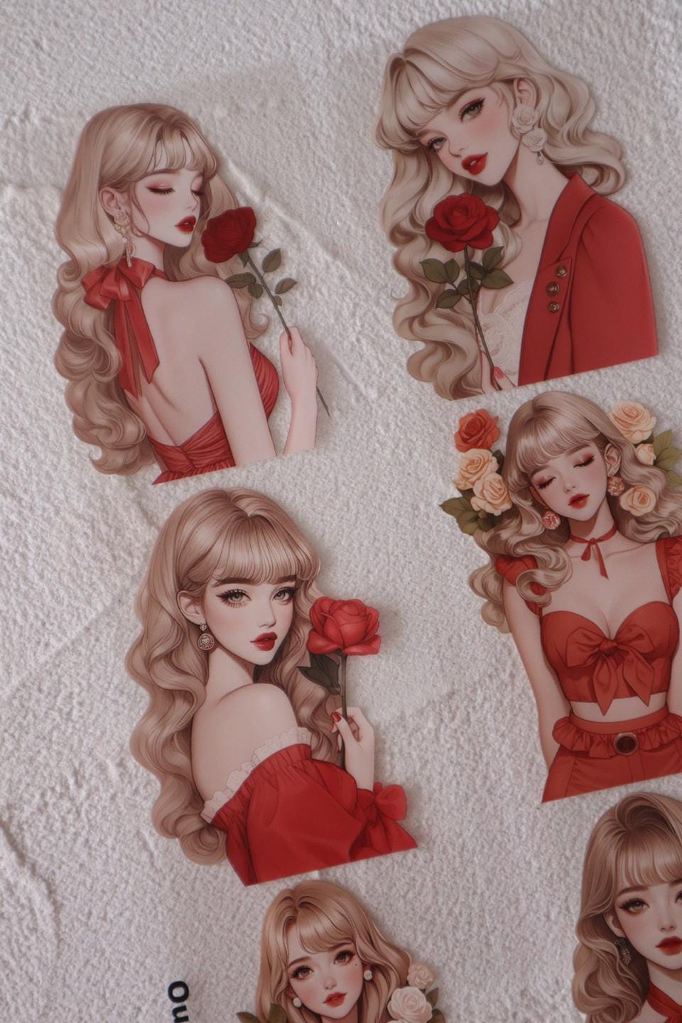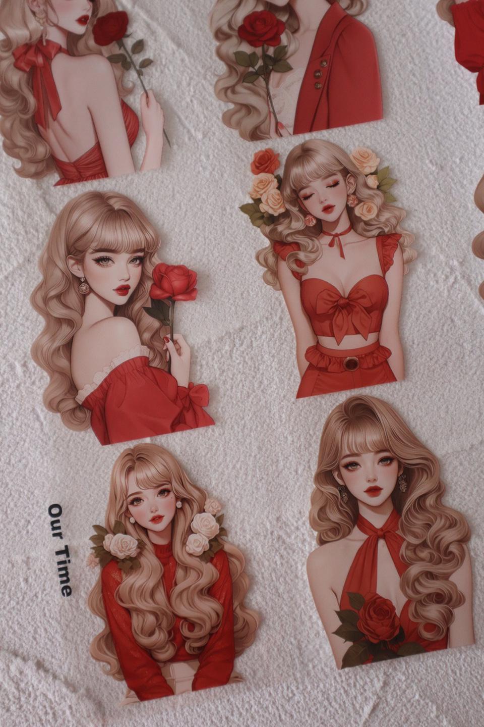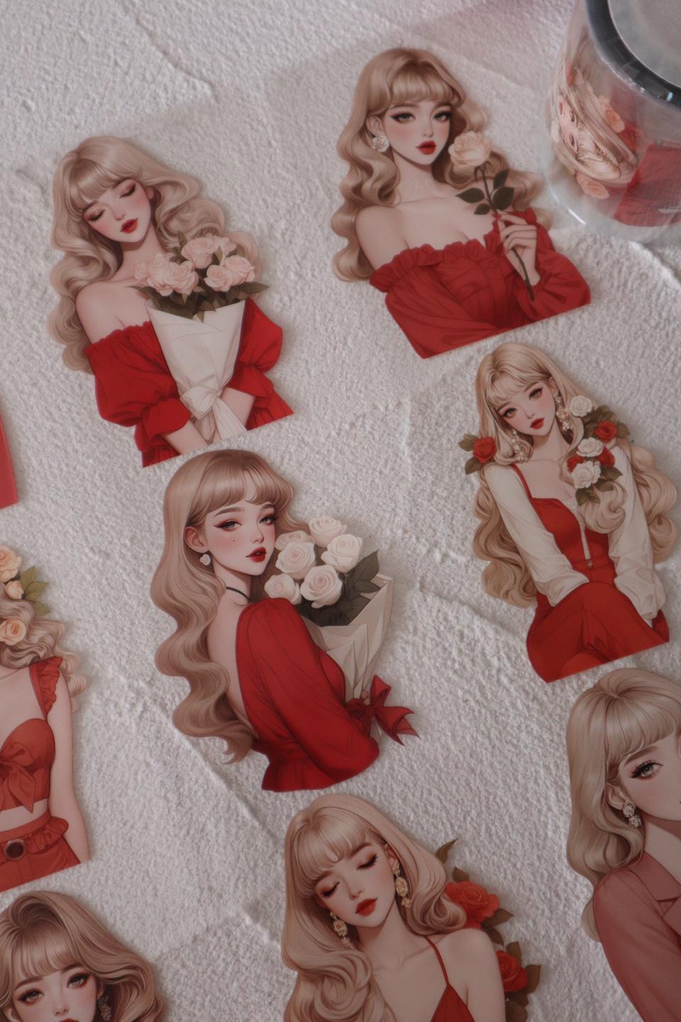 OURTIME) Red Girl Pet tape - 3D Glossy Printing 200cm(100cm x 2cut)