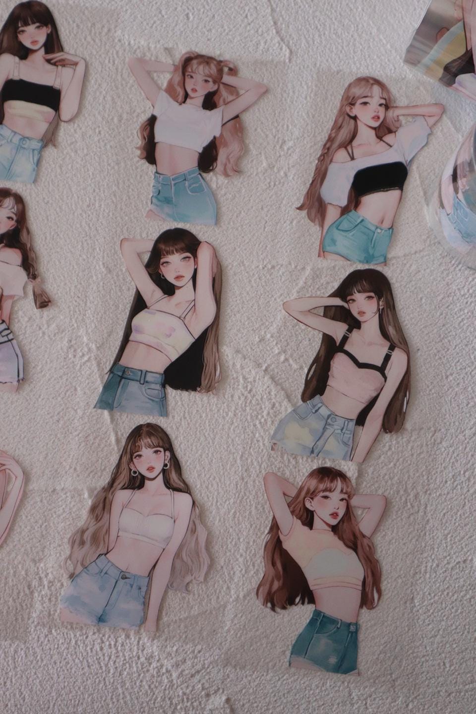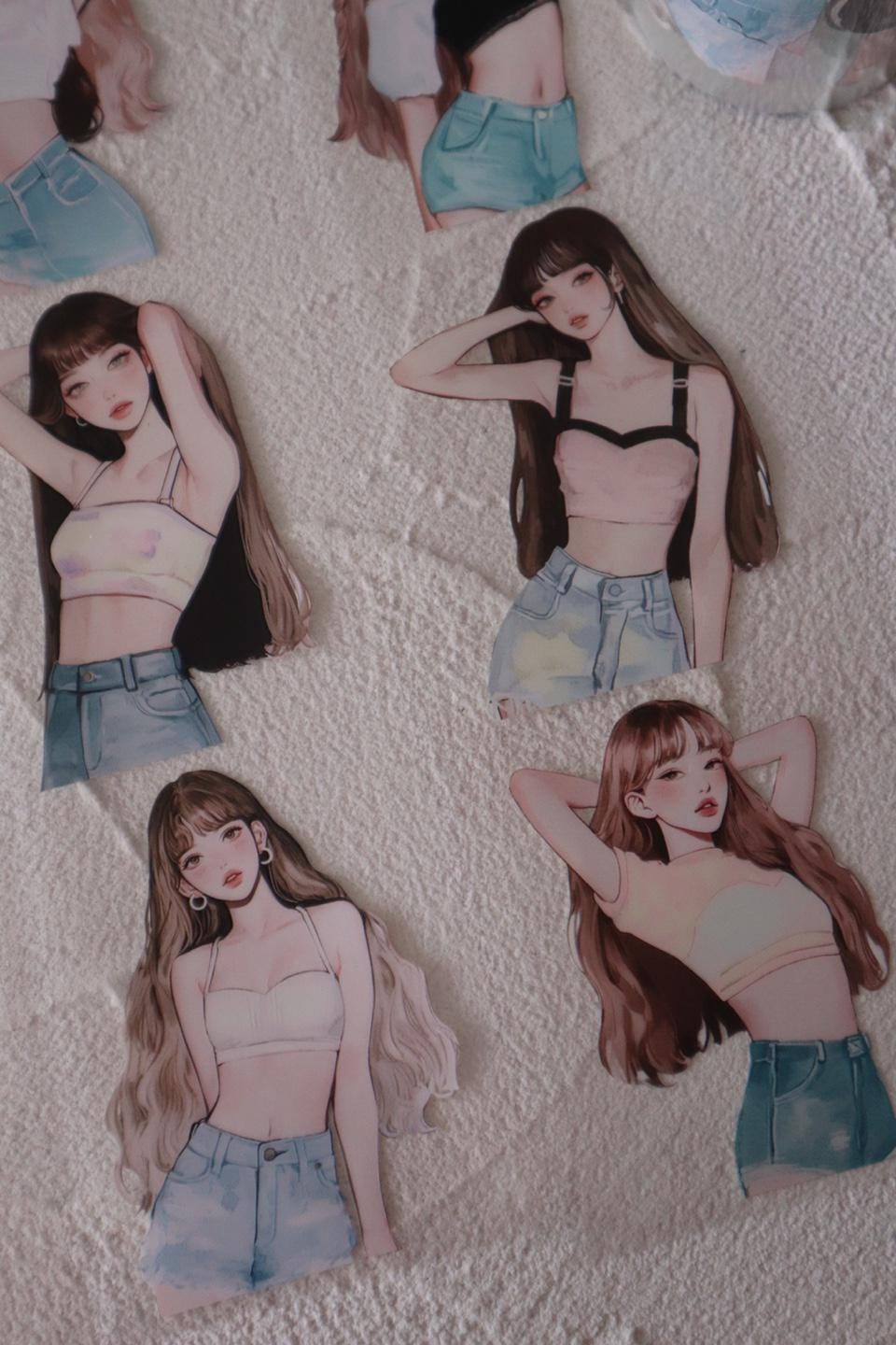 OURTIME) Beach Girl Pet tape - 3D Glossy Printing 200cm(100cm x 2cut)