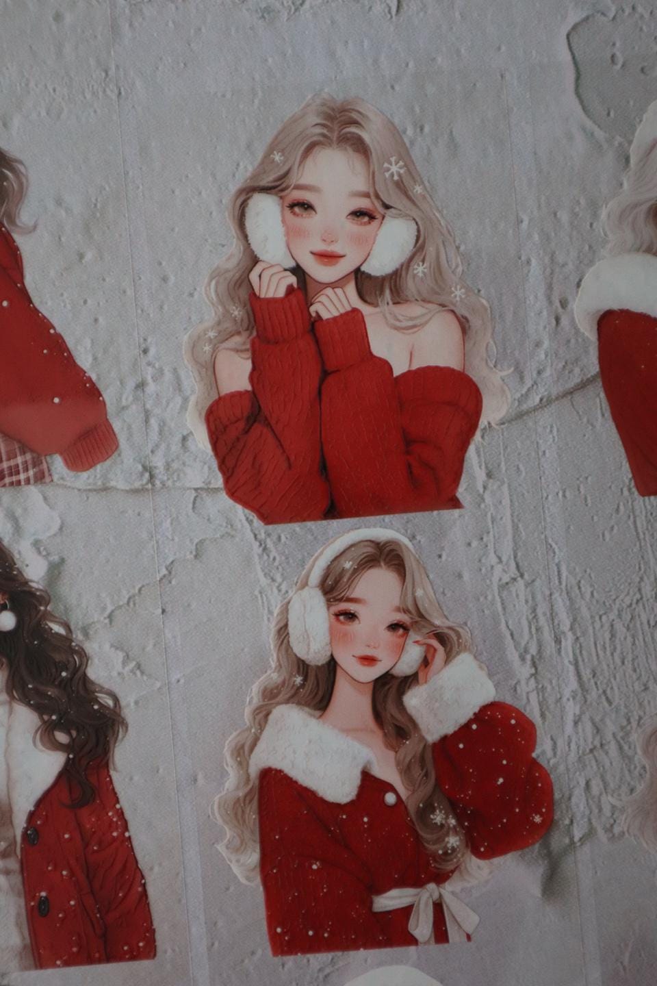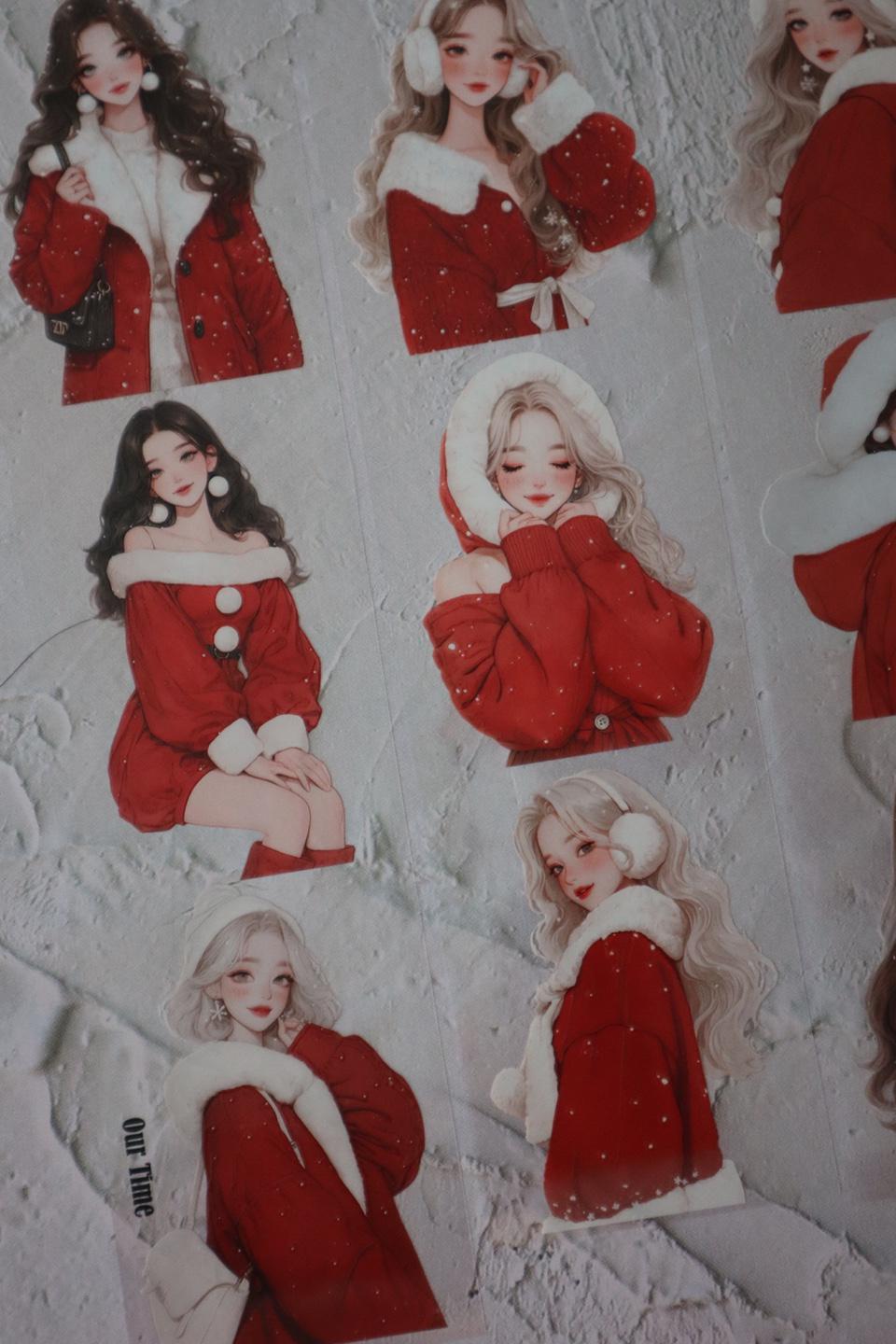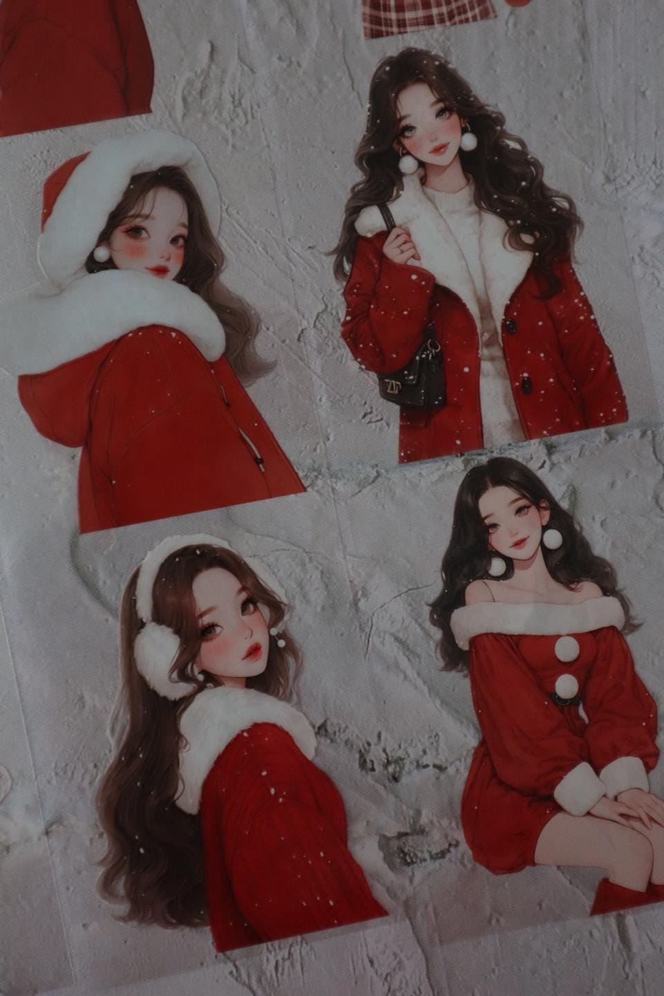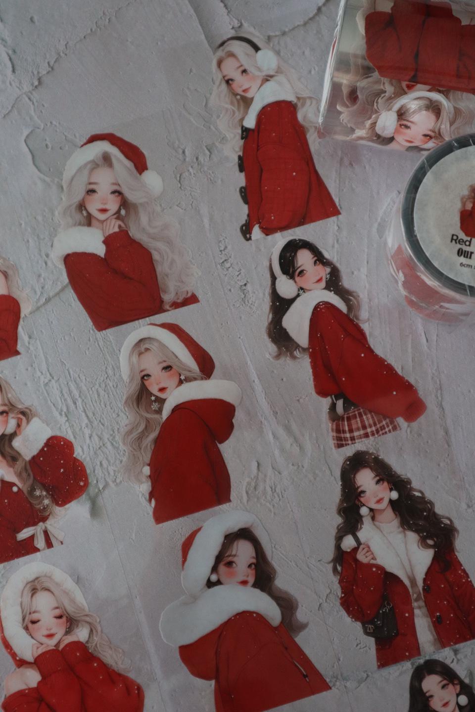 OURTIME) Red Winter Pet tape - 3D Glossy Printing 200cm(100cm x 2cut)