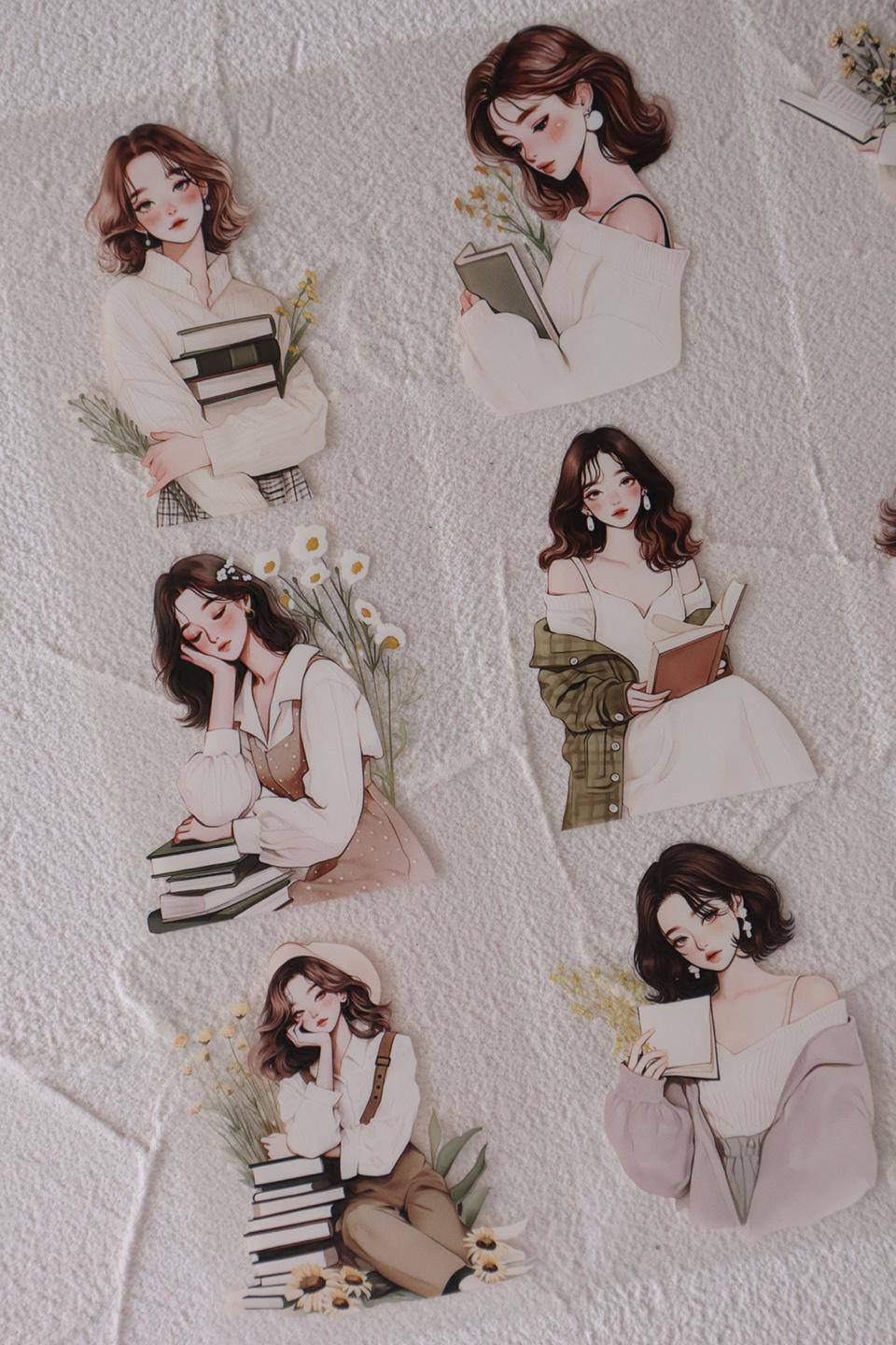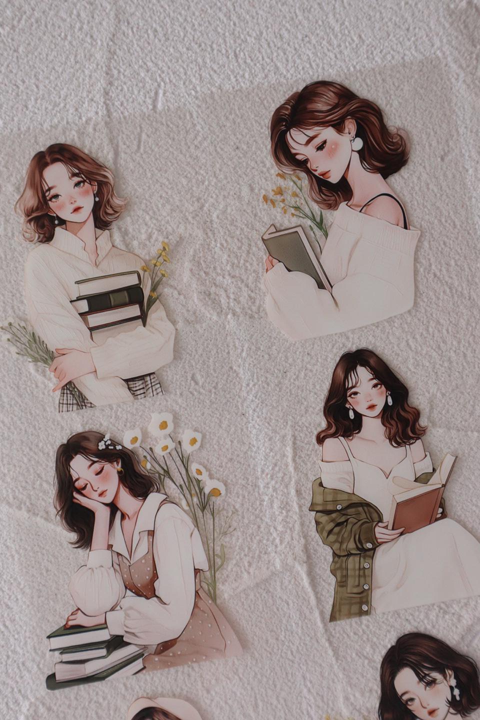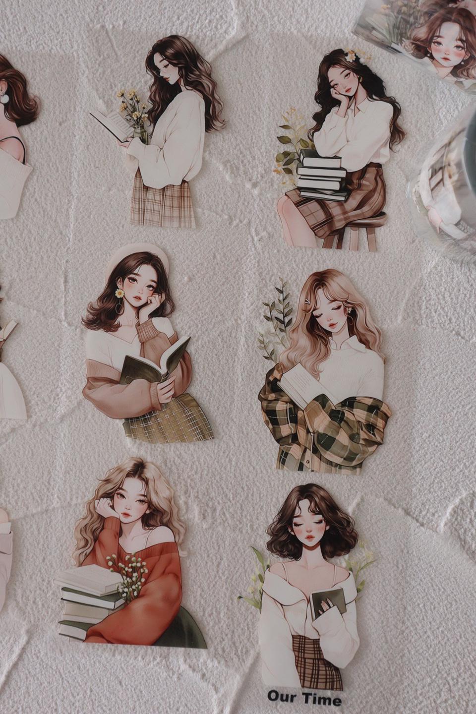 OURTIME) Reading Girl Pet tape - 3D Glossy Printing 200cm(100cm x 2cut)