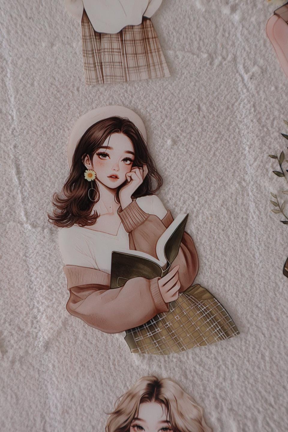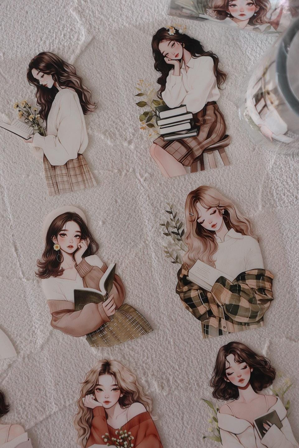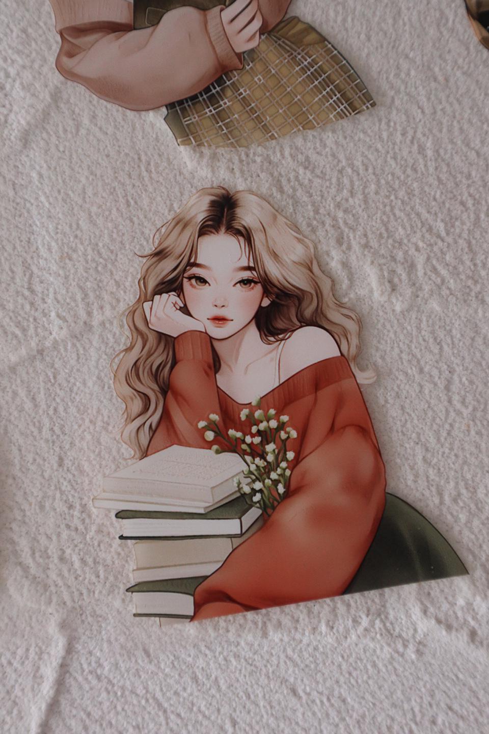 OURTIME) Reading Girl Pet tape - 3D Glossy Printing 200cm(100cm x 2cut)