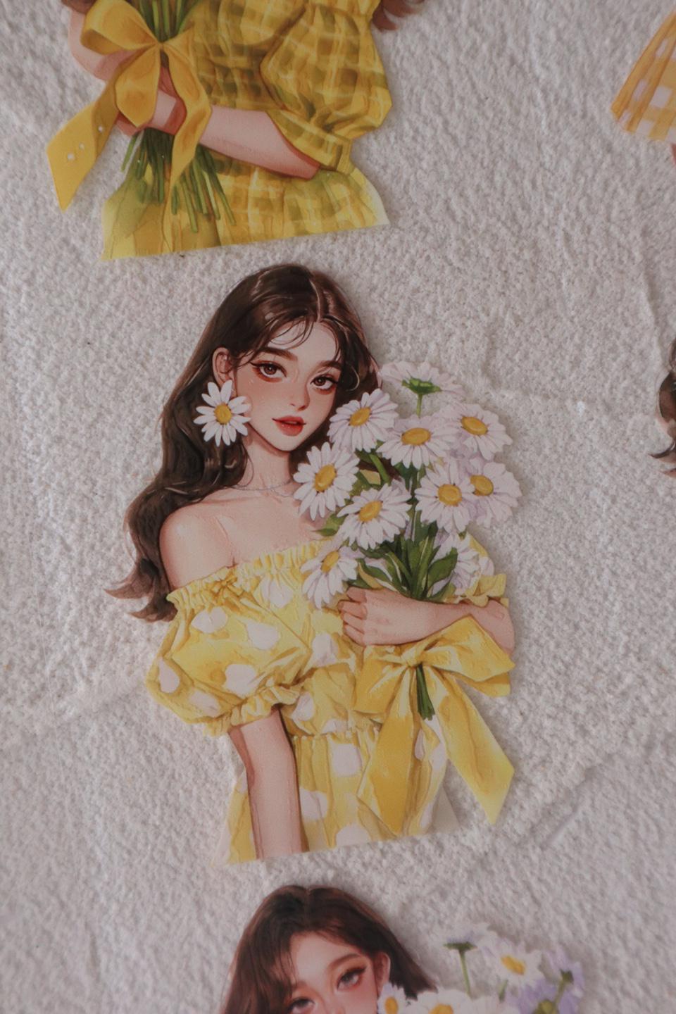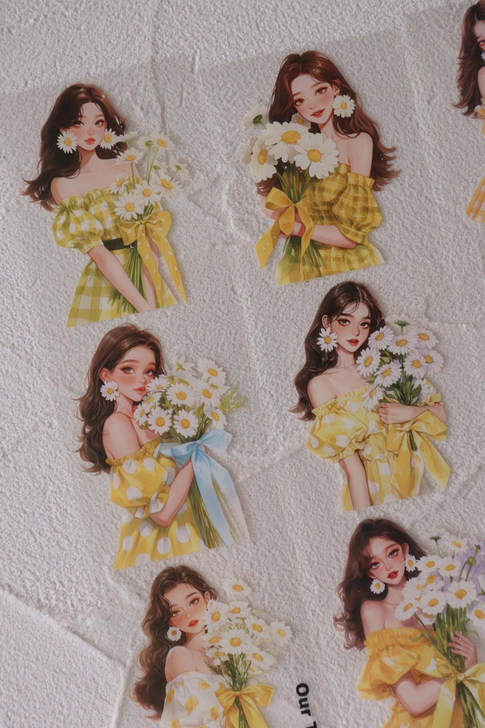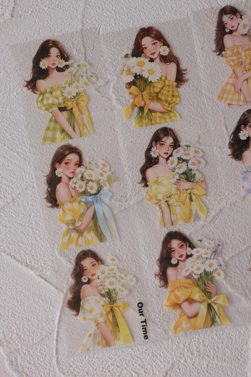 OURTIME) Girl and Daisy Pet tape - 3D Glossy Printing 200cm(100cm x 2cut)