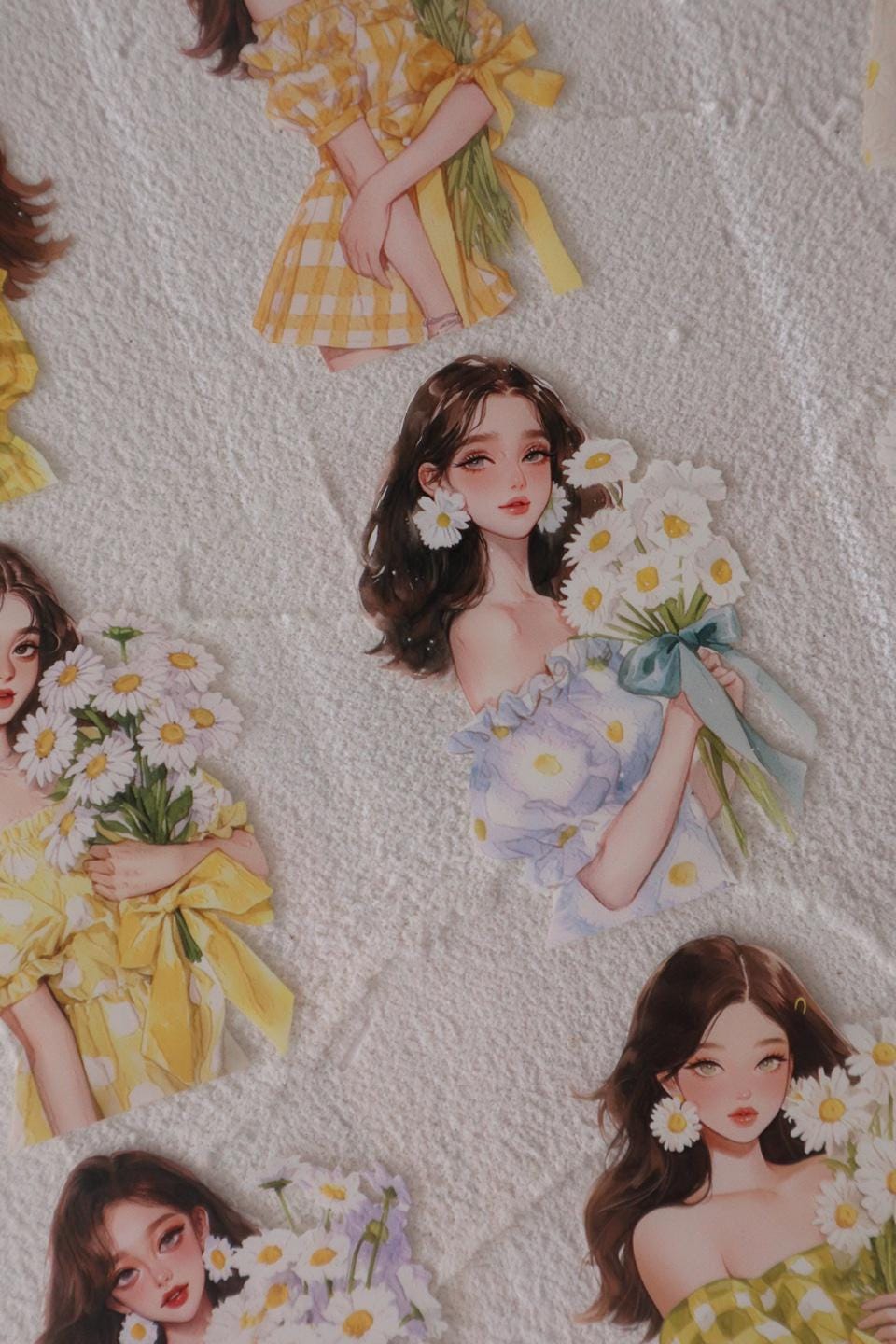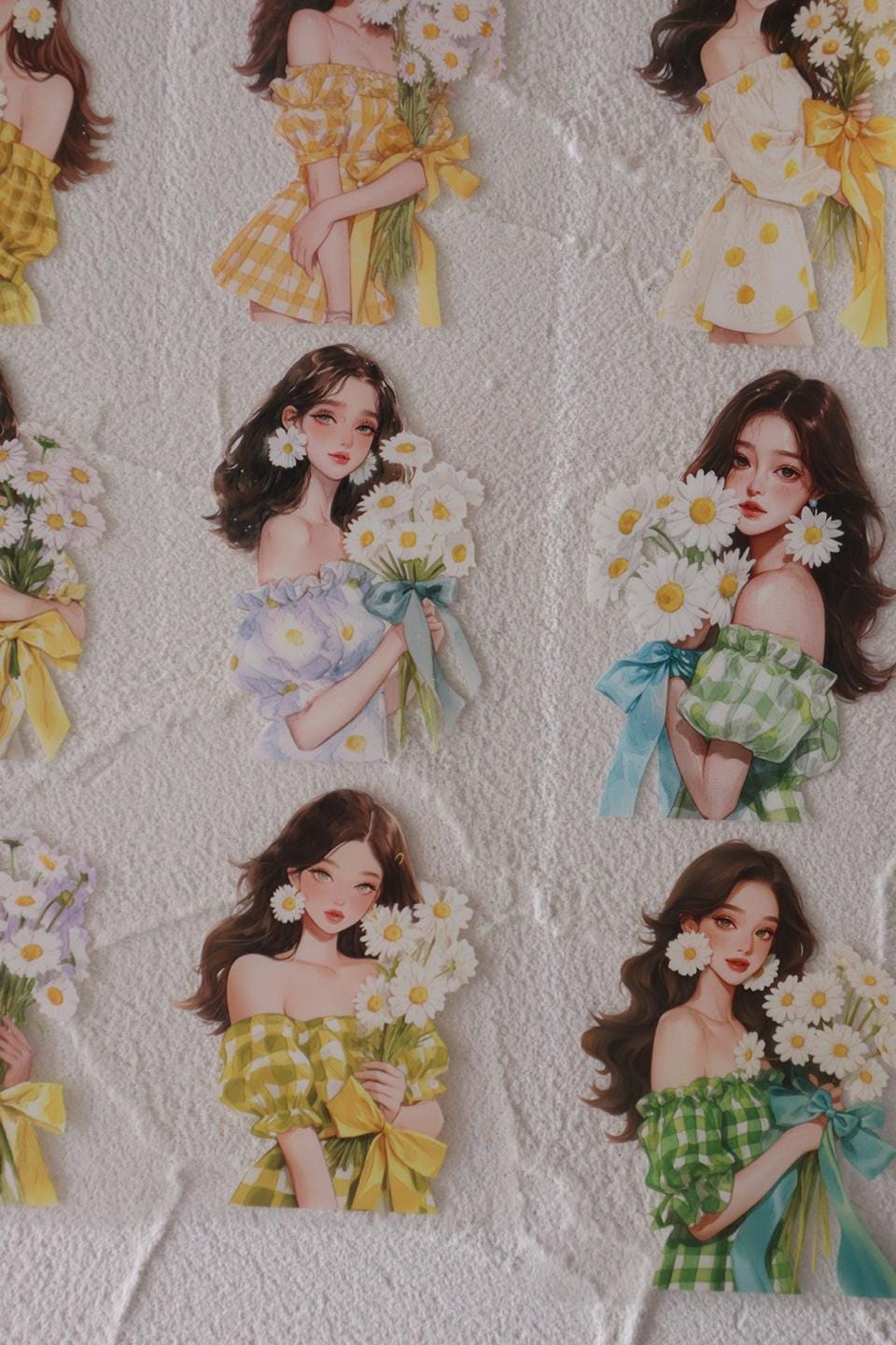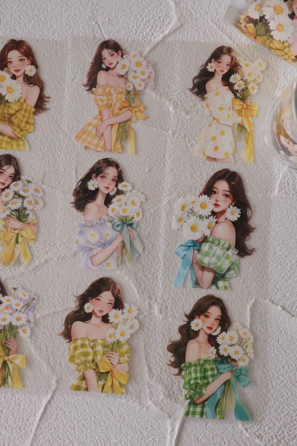 OURTIME) Girl and Daisy Pet tape - 3D Glossy Printing 200cm(100cm x 2cut)