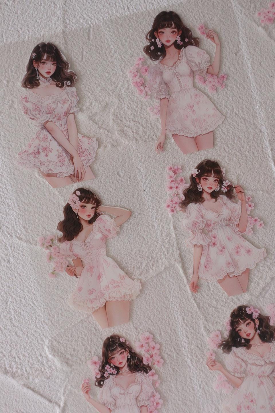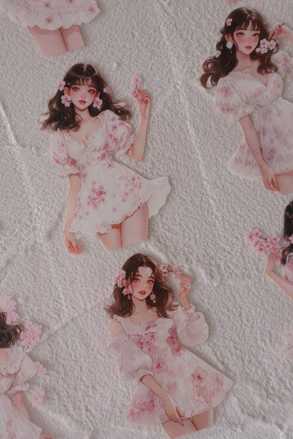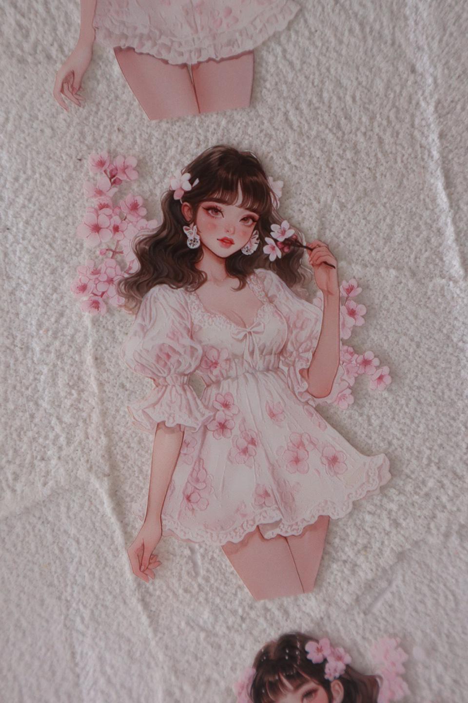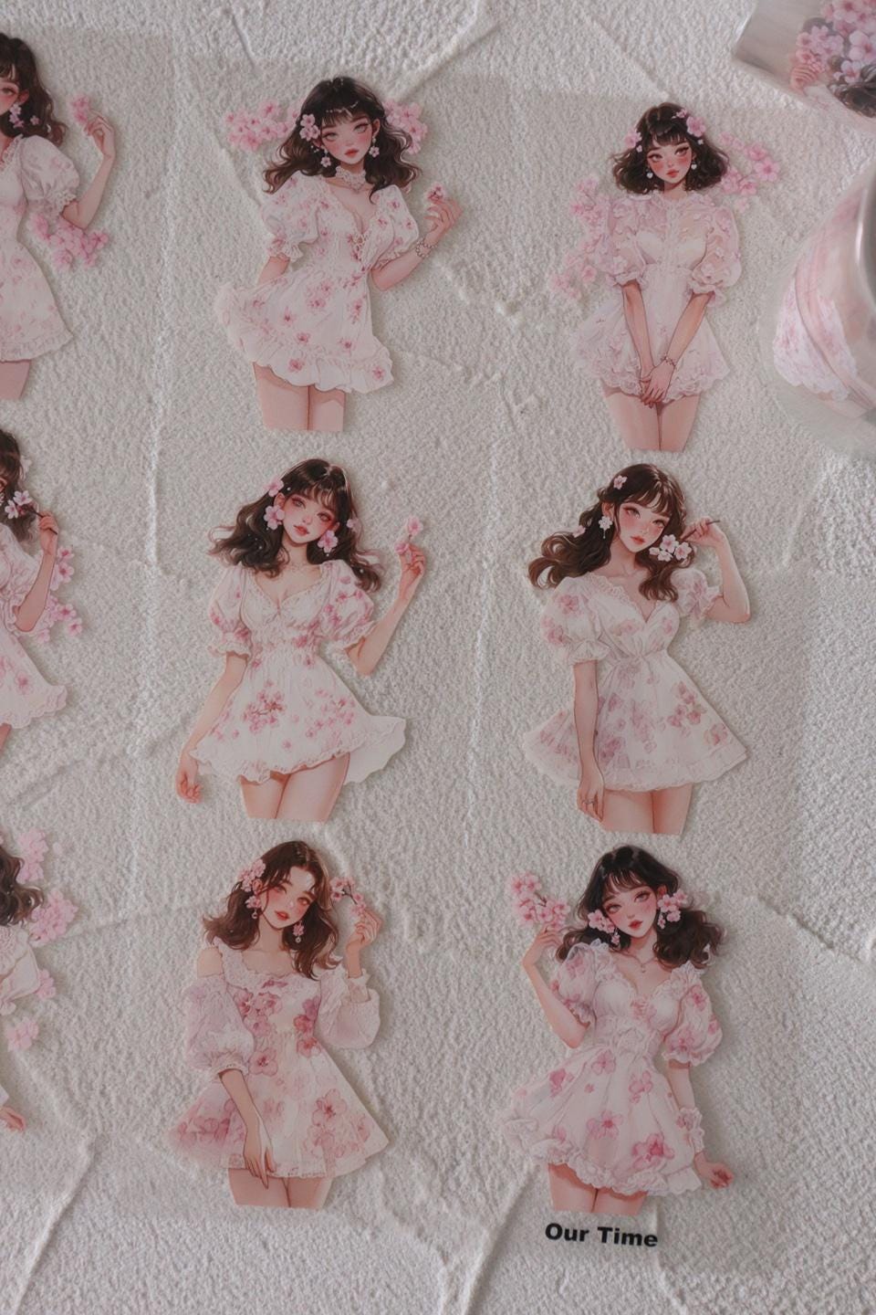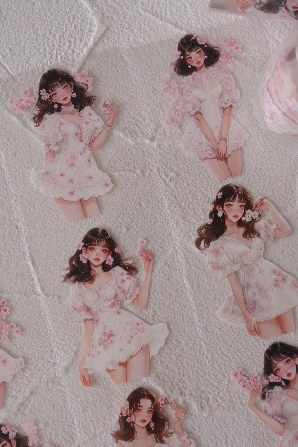OURTIME) Sakura Girl Pet tape - 3D Glossy Printing 200cm(100cm x 2cut)