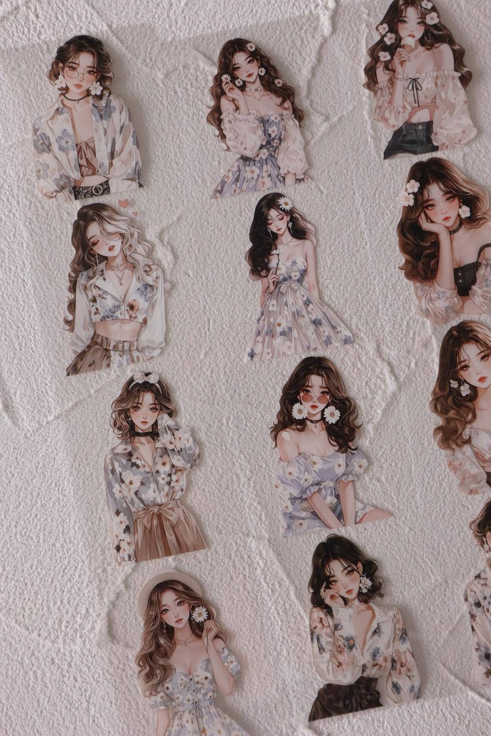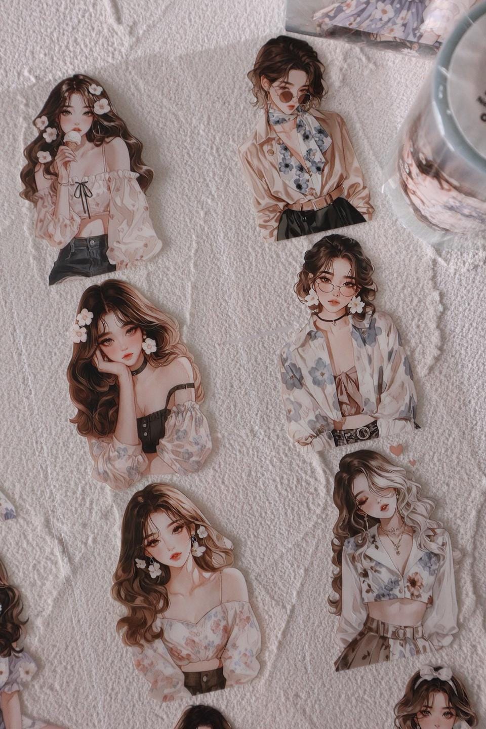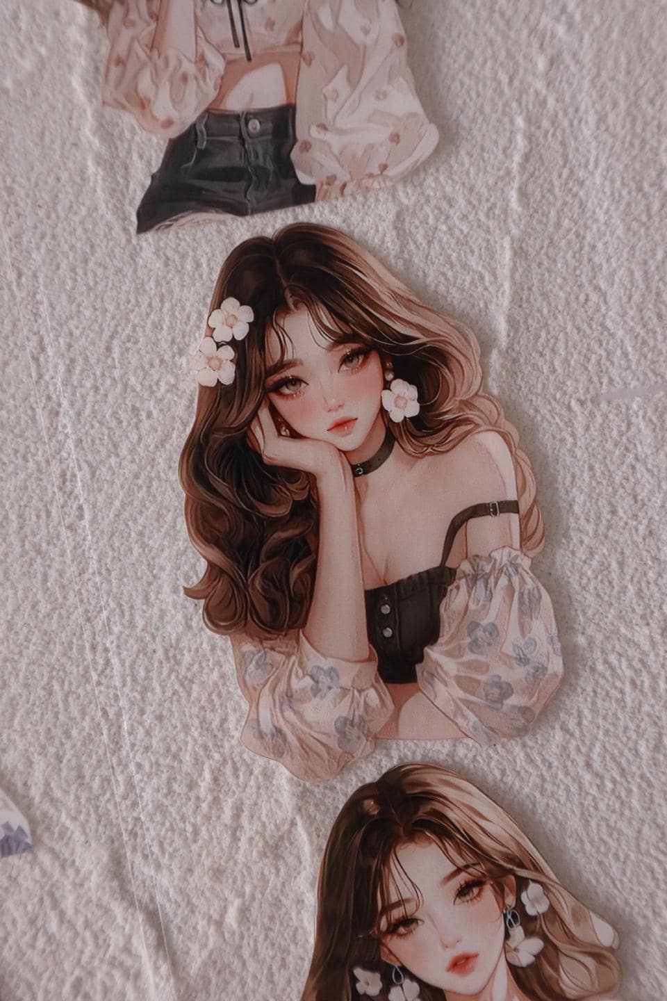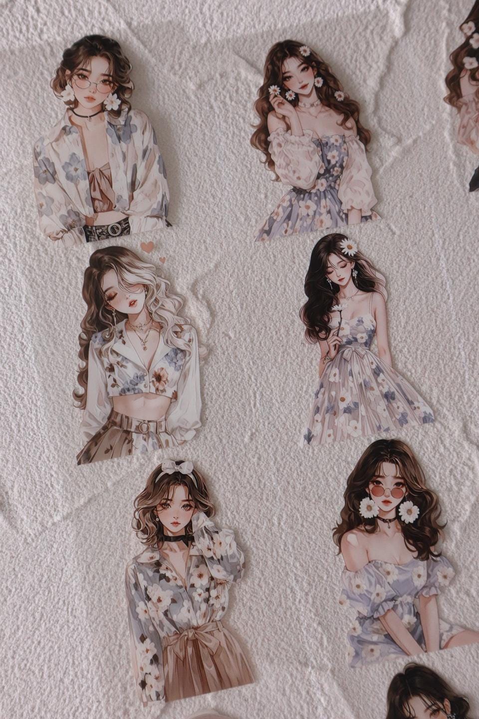 OURTIME) Neutral Flower Girl Pet tape - 3D Glossy Printing 200cm(100cm x 2cut)
