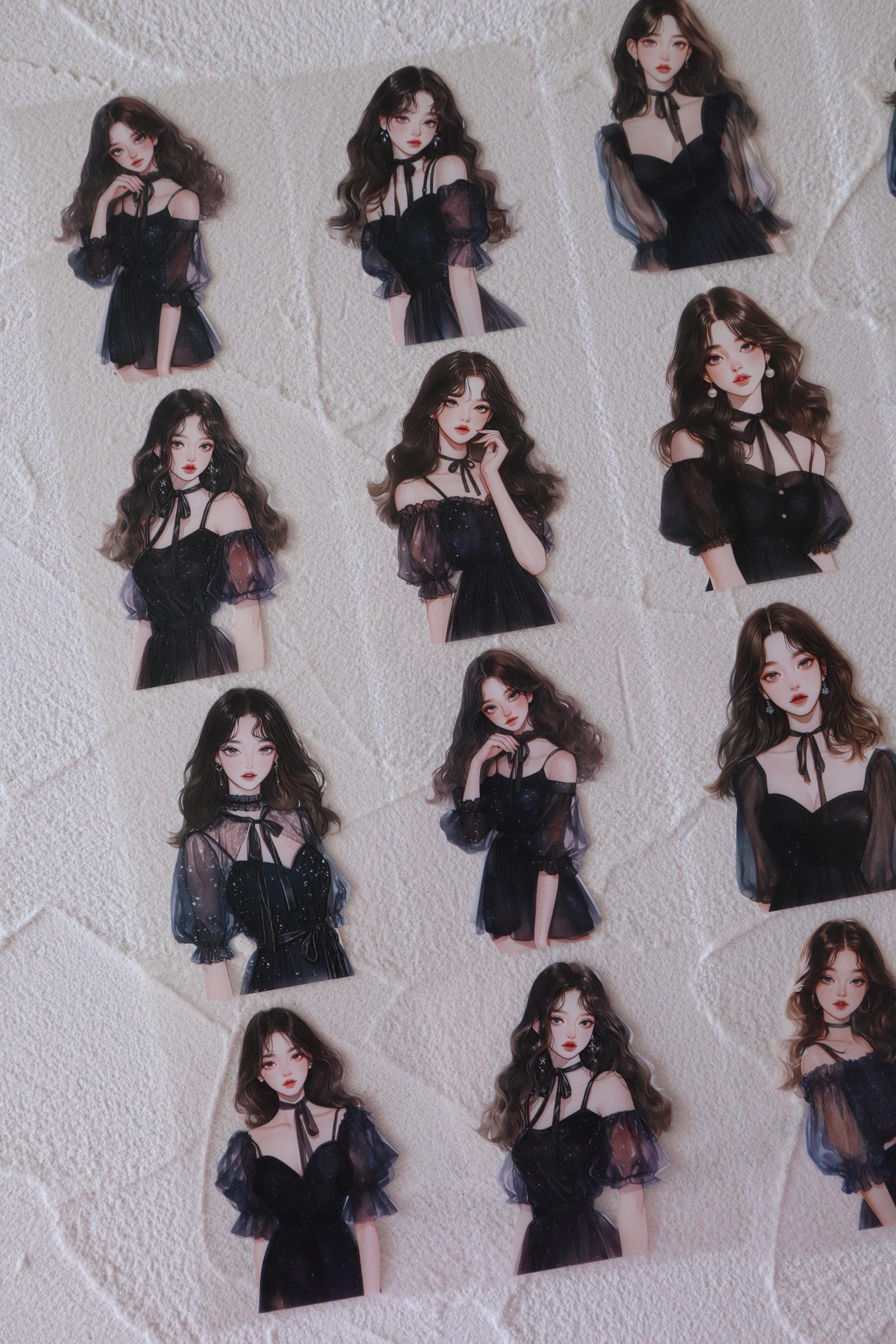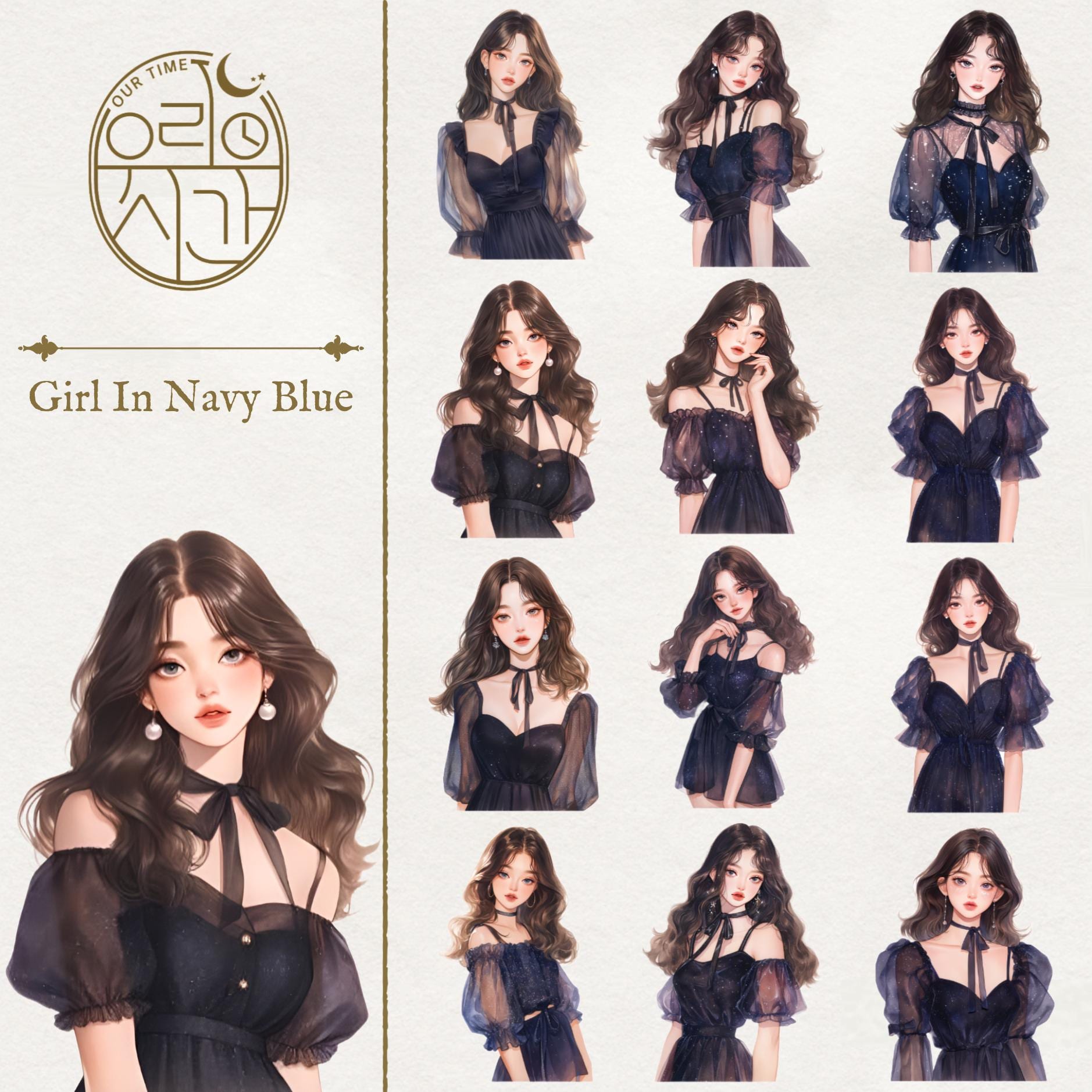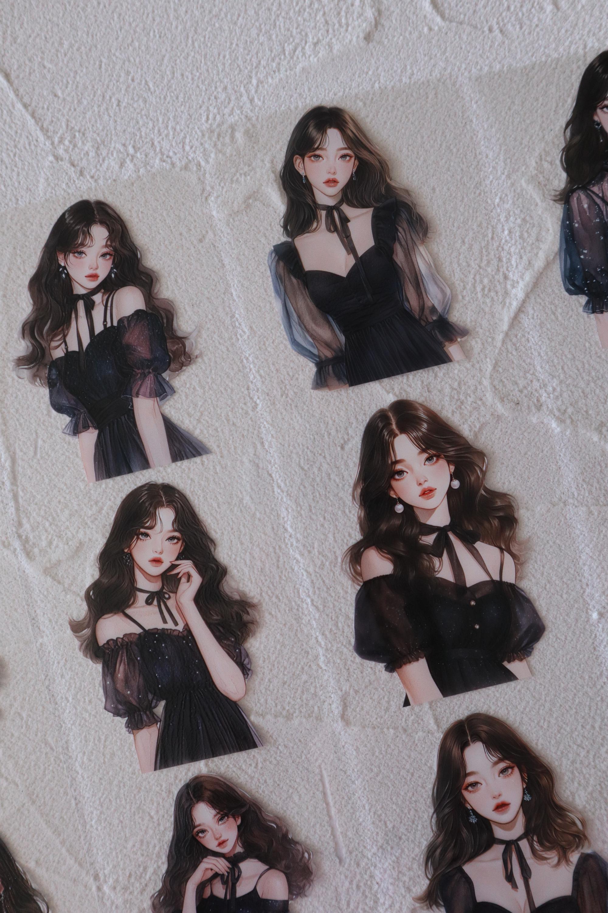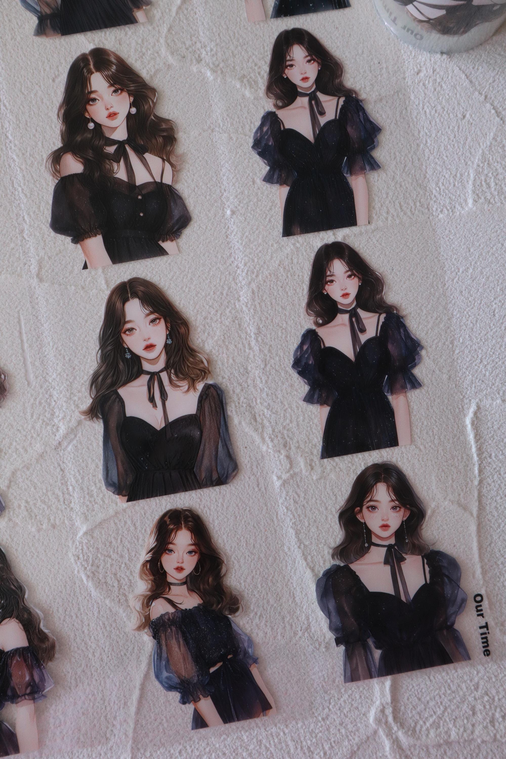 OURTIME) Girl In Navy Blue Pet tape - 3D Glossy Printing 200cm(100cm x 2cut)