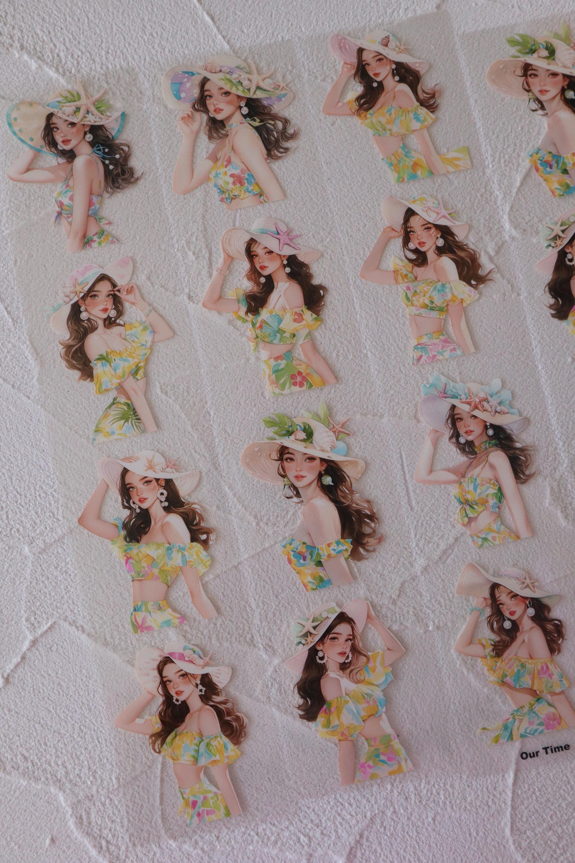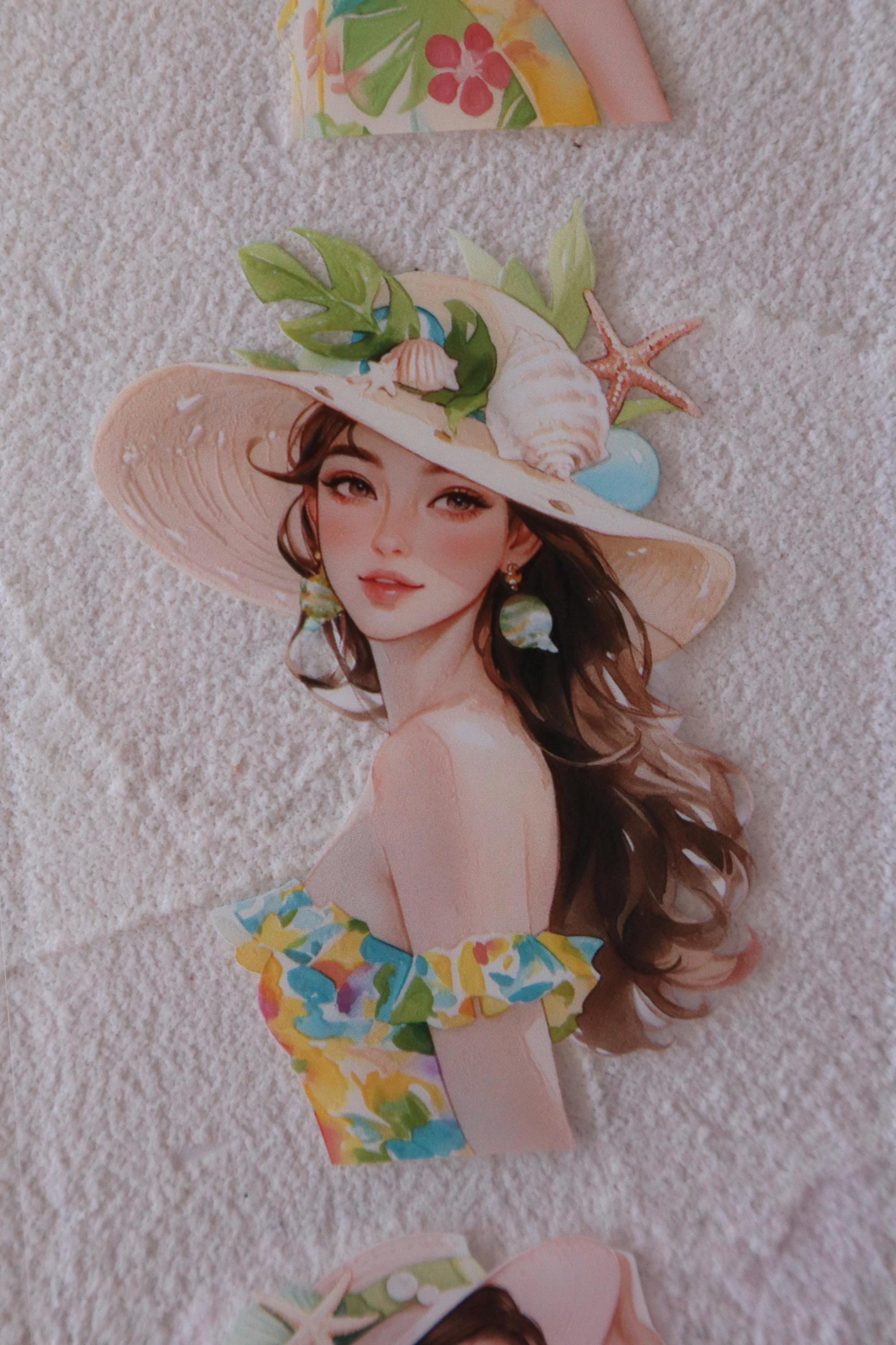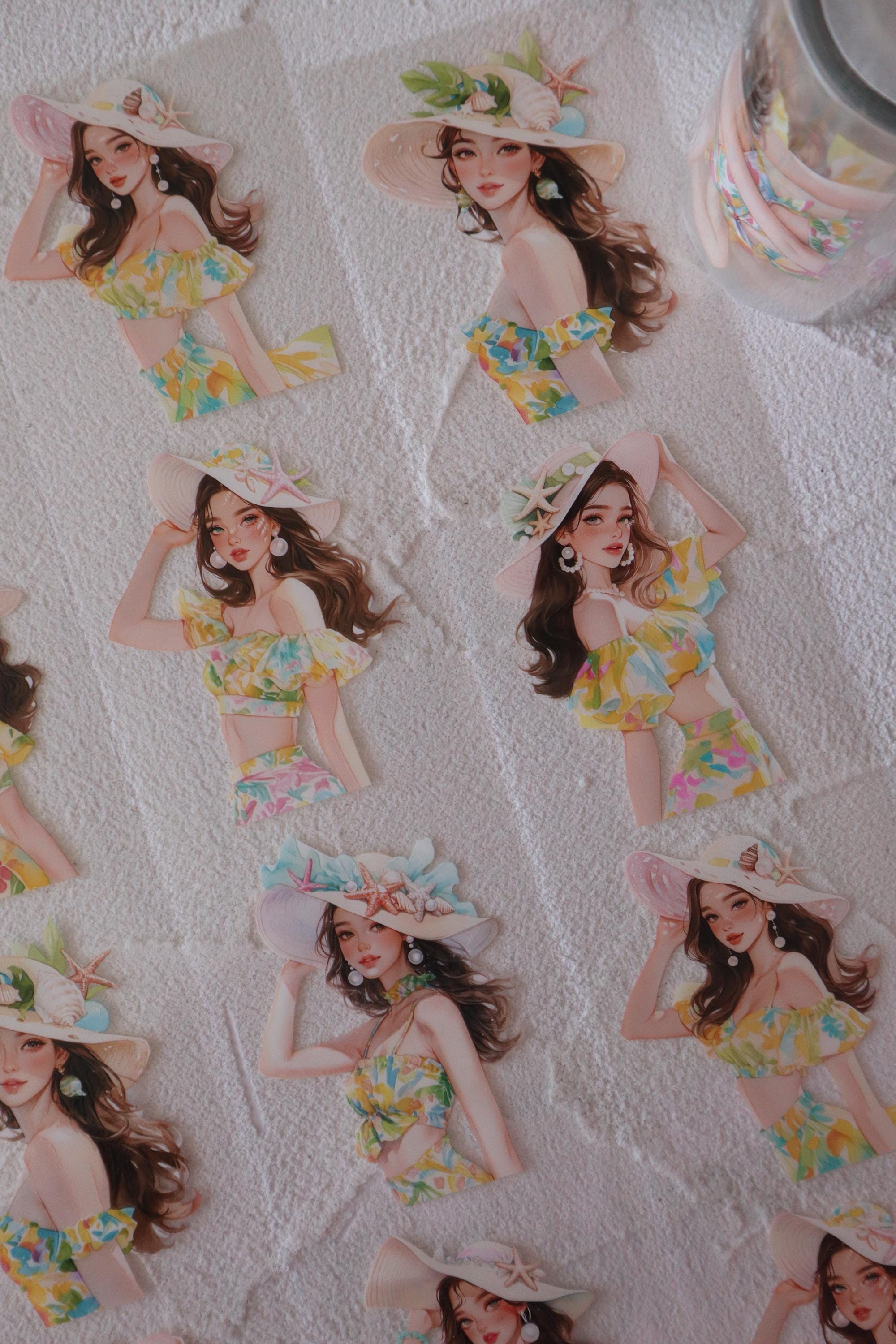 OURTIME) Summer Hat Girl Pet tape - 3D Glossy Printing 200cm(100cm x 2cut)