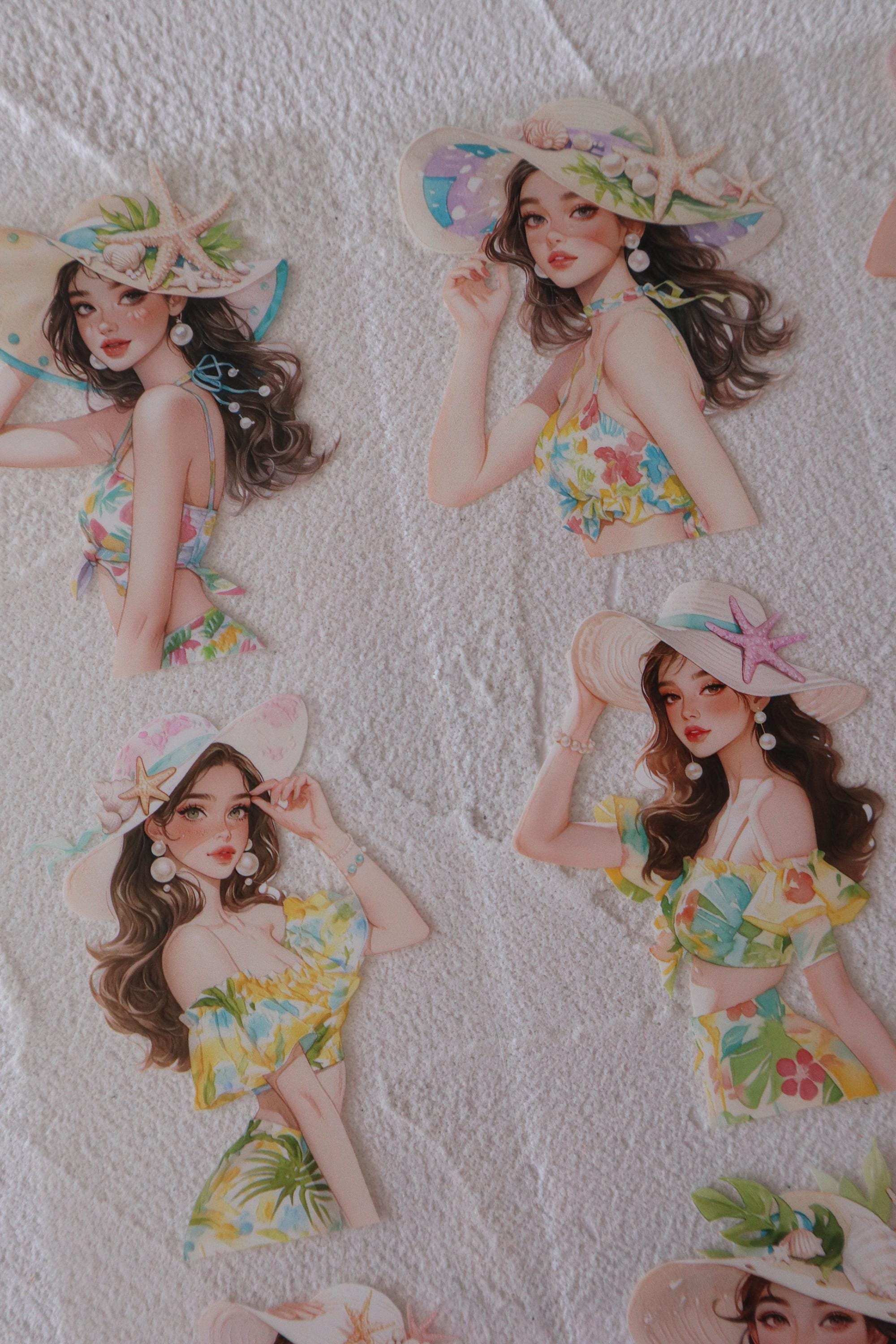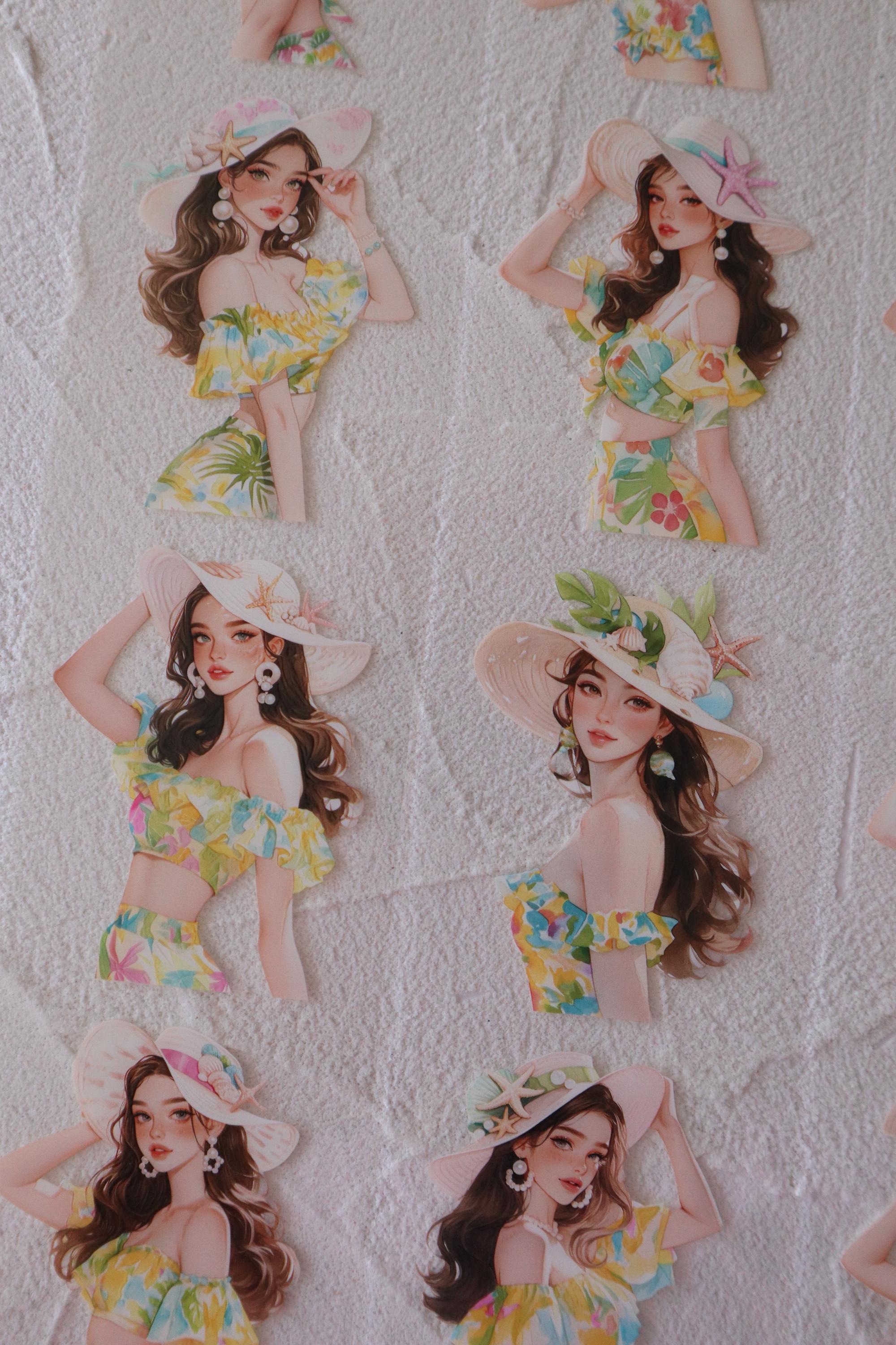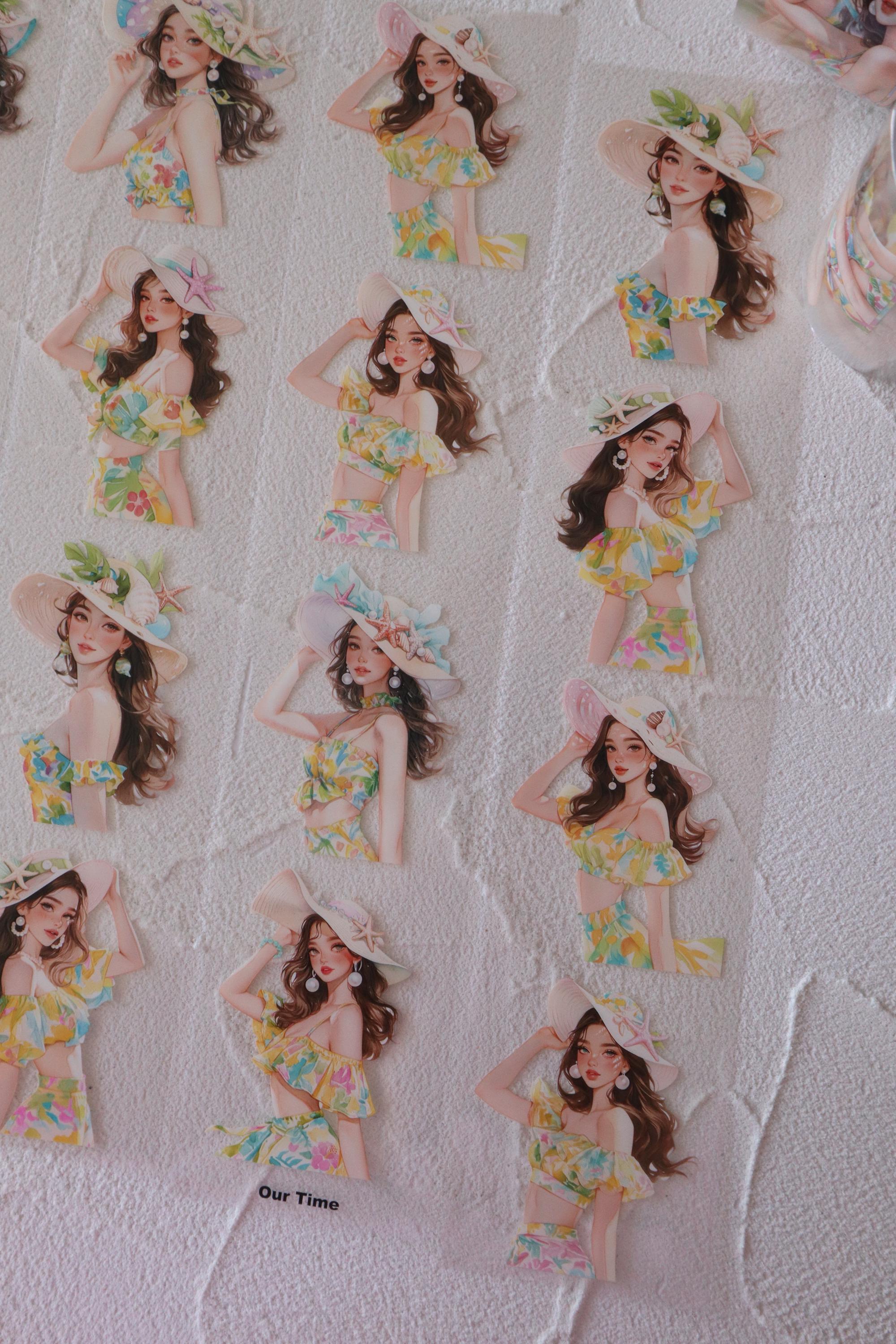 OURTIME) Summer Hat Girl Pet tape - 3D Glossy Printing 200cm(100cm x 2cut)