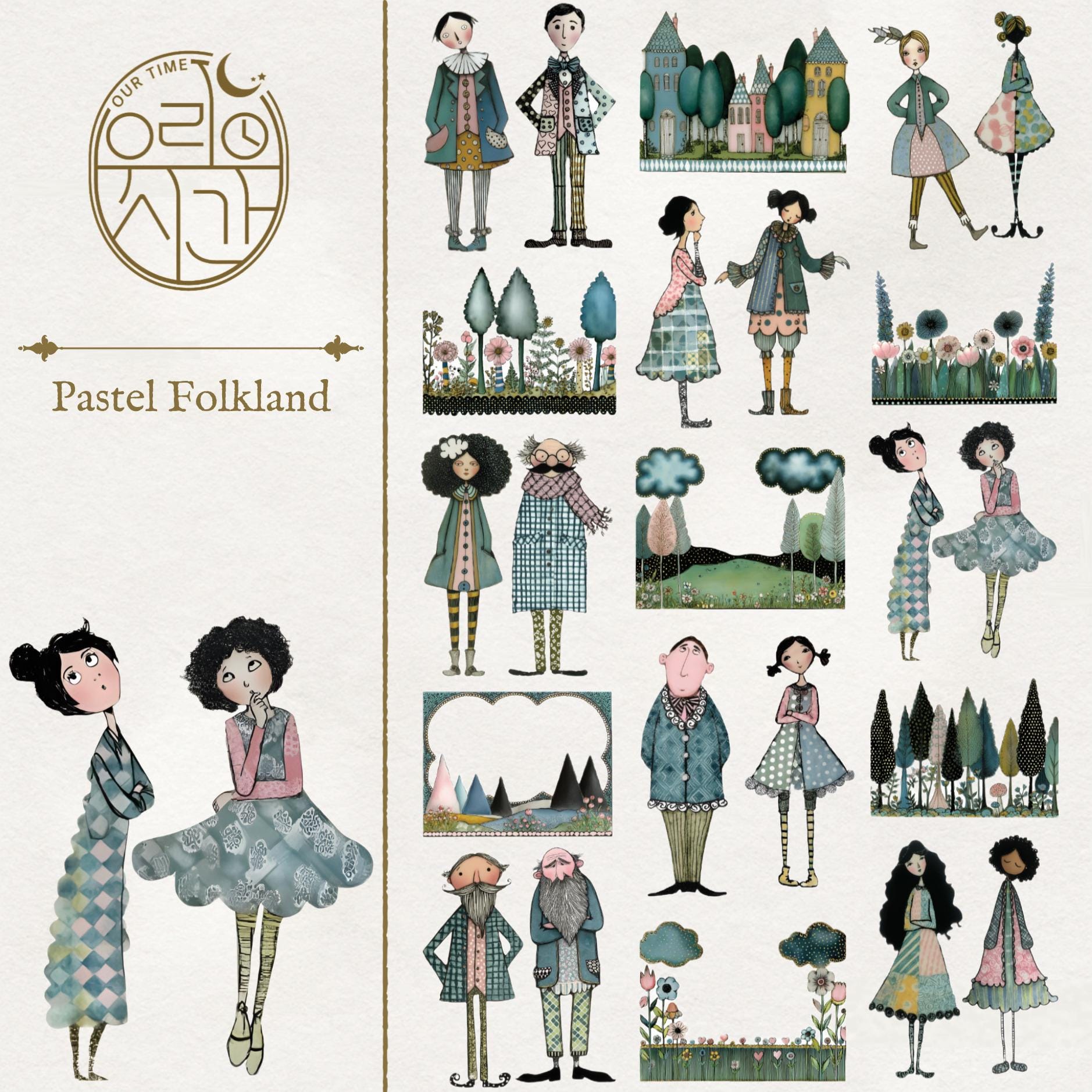 OURTIME) Pastel Folkland Pet tape - 3D Glossy Printing 200cm(1 Loop)