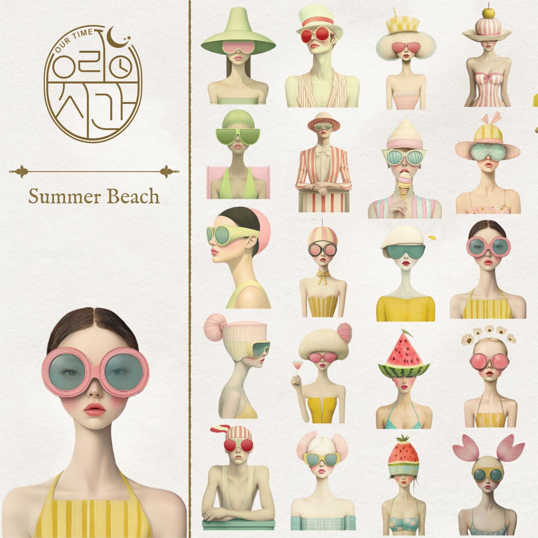 OURTIME) Summer Beach Pet tape - 3D Glossy Printing 200cm(1 Loop)