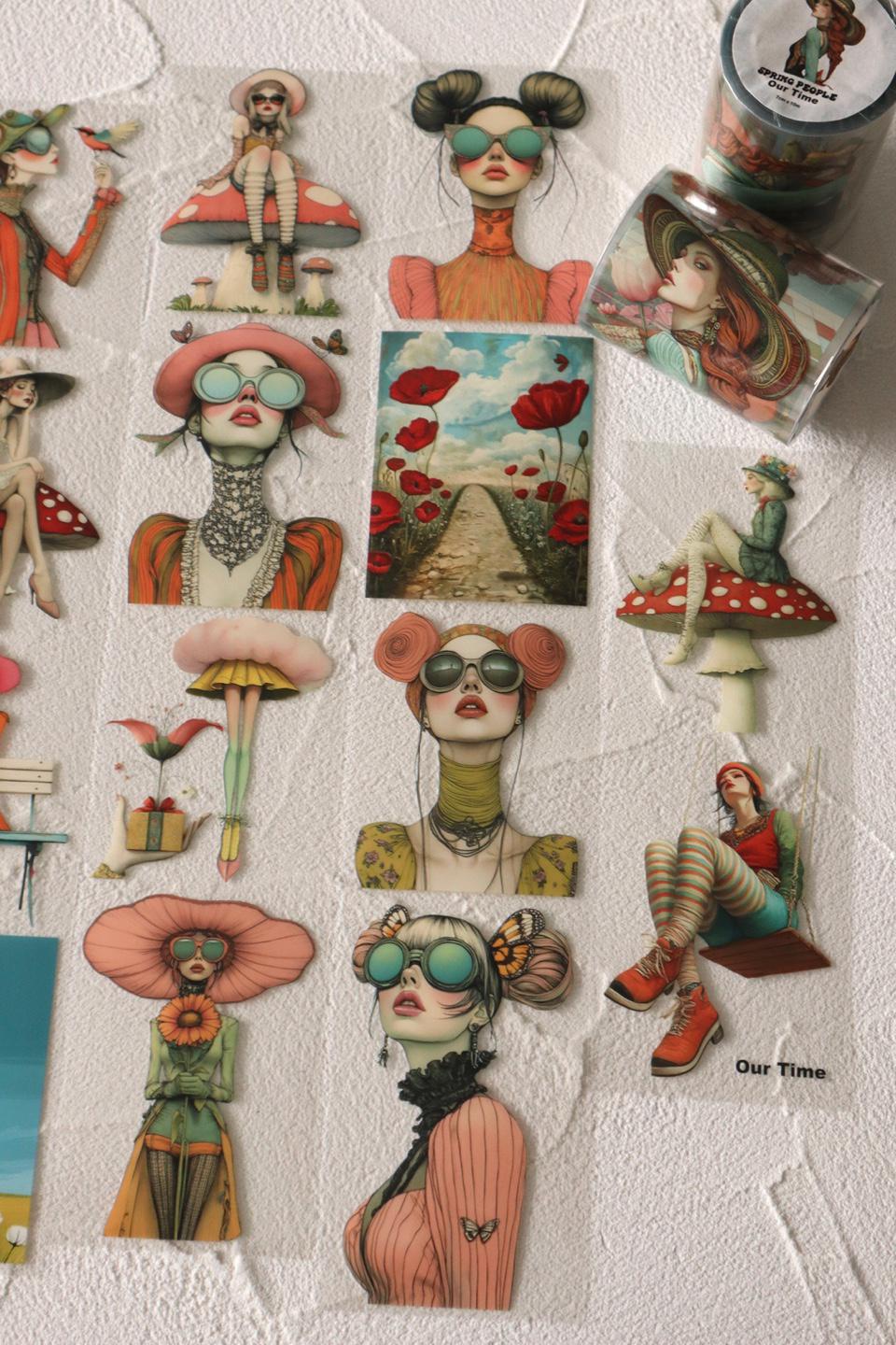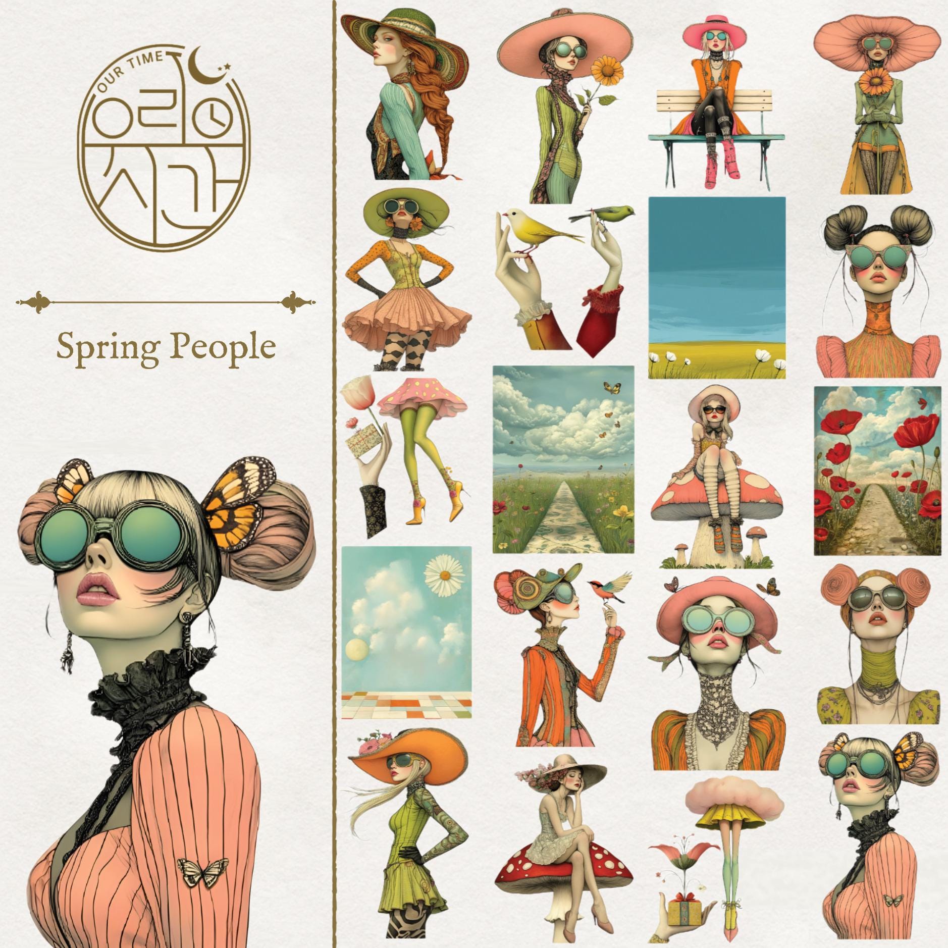 OURTIME) Spring People Pet tape - 3D Glossy Printing 200cm(1 Loop)
