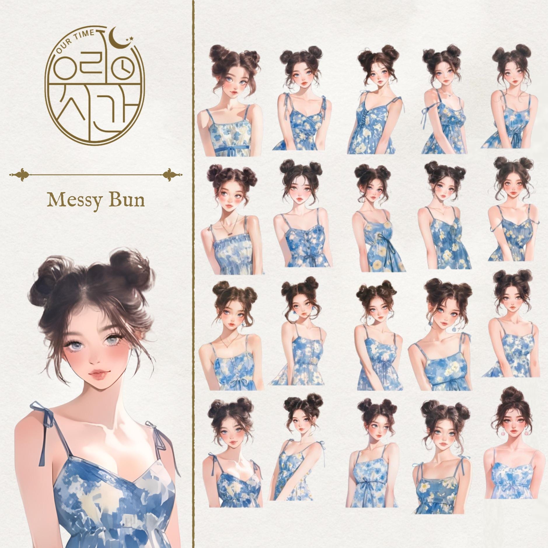OURTIME) Messy Bun Pet tape - 3D Glossy Printing 200cm(1 Loop)