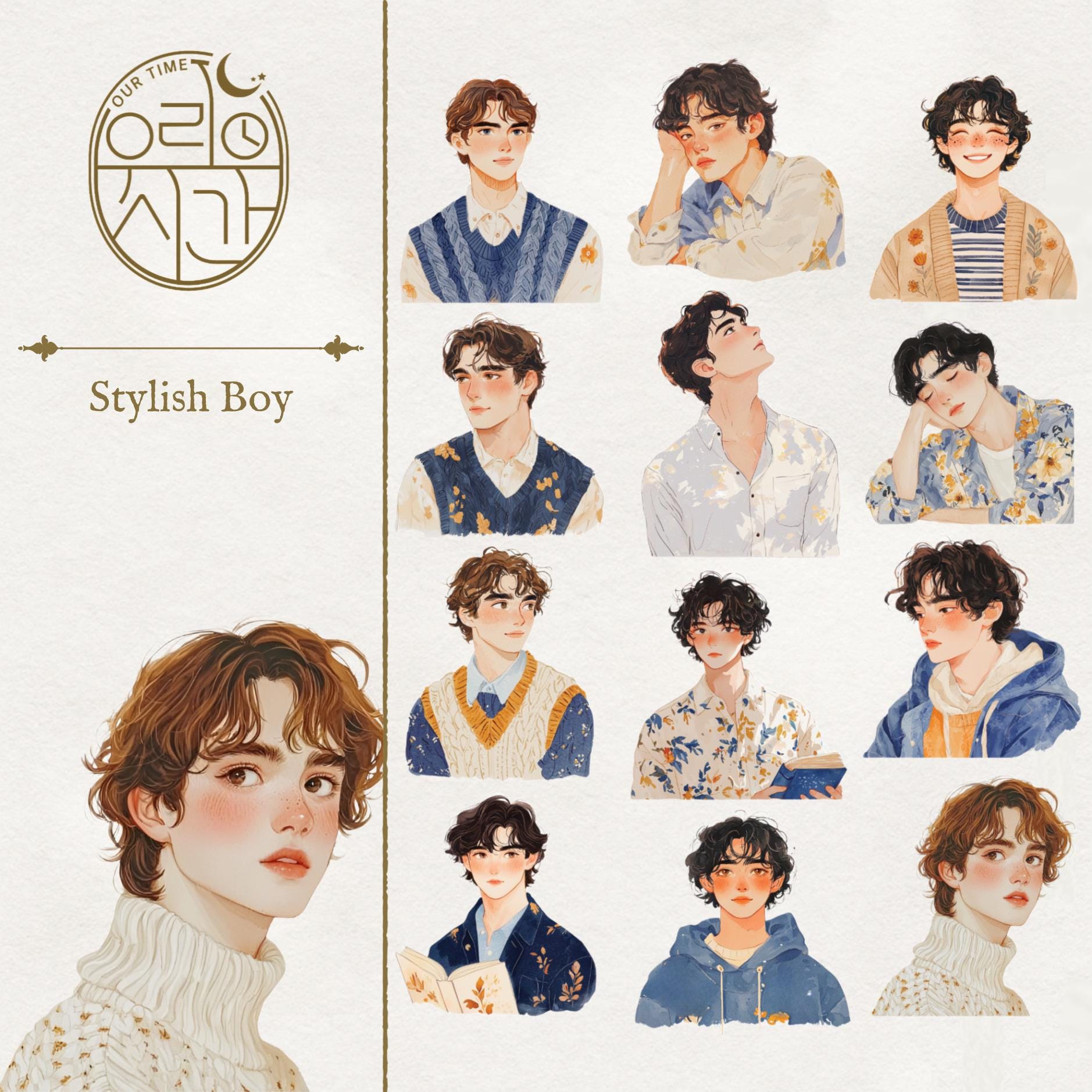 OURTIME) Stylish Boy Pet tape - 3D Glossy Printing 200cm(1 Loop)