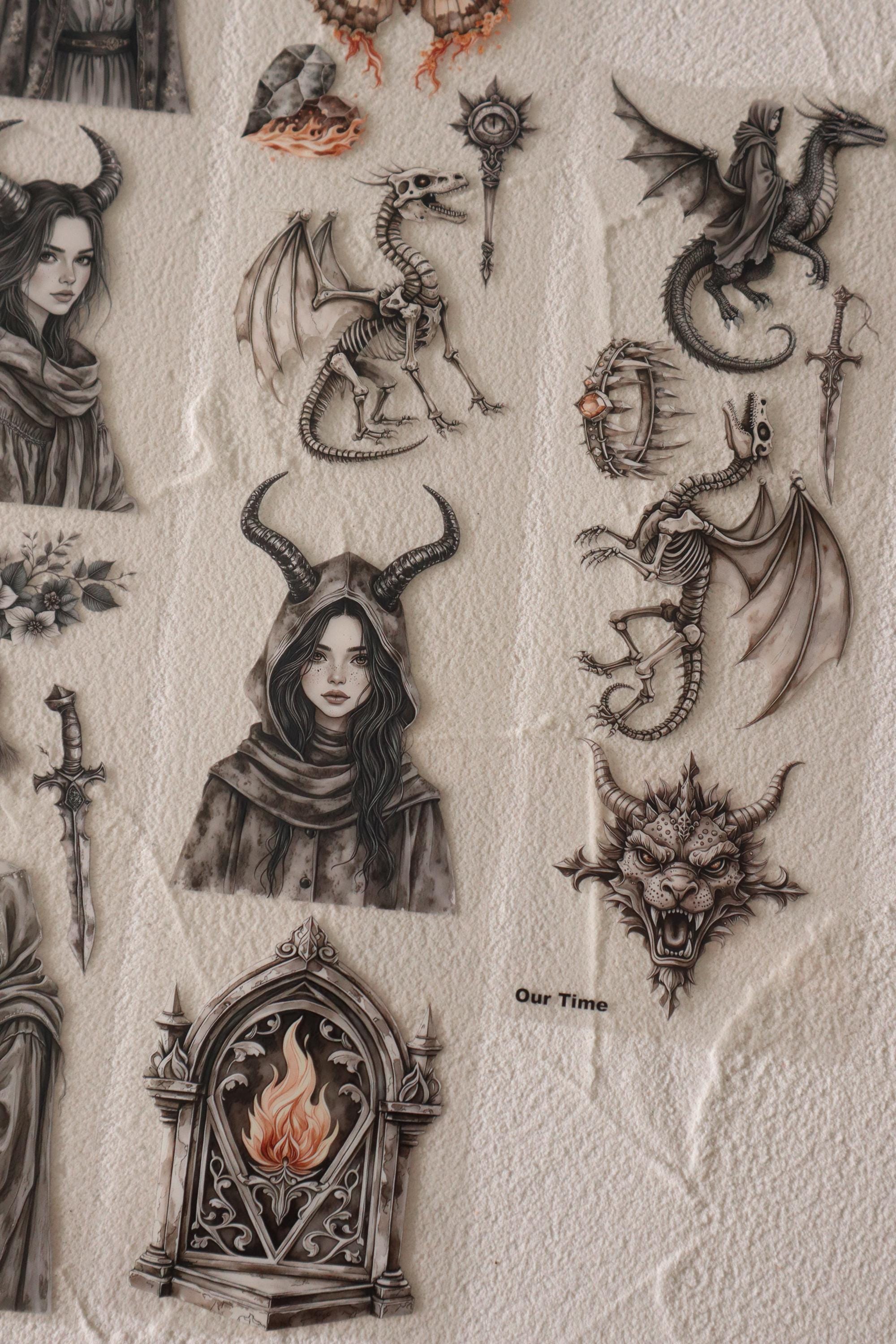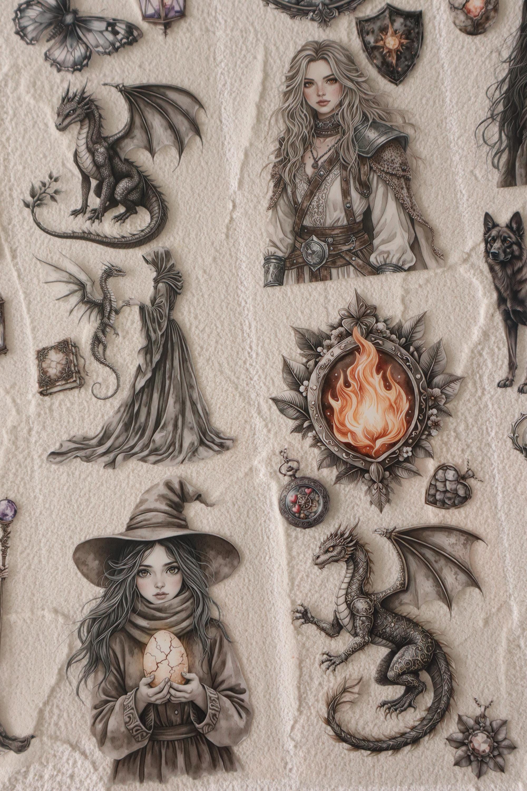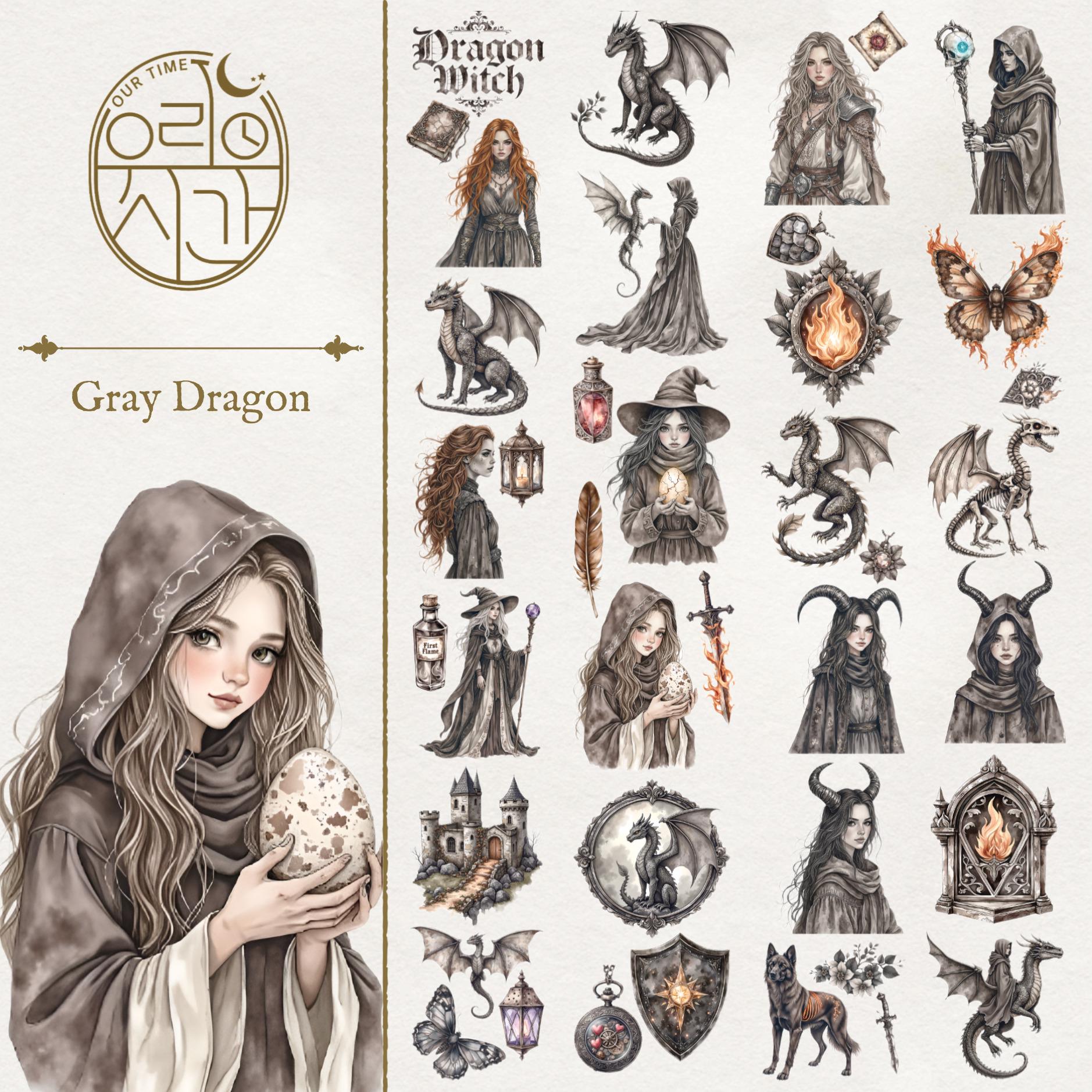 OURTIME) Gray Dragon Pet tape - 3D Glossy Printing 200cm(1 Loop)