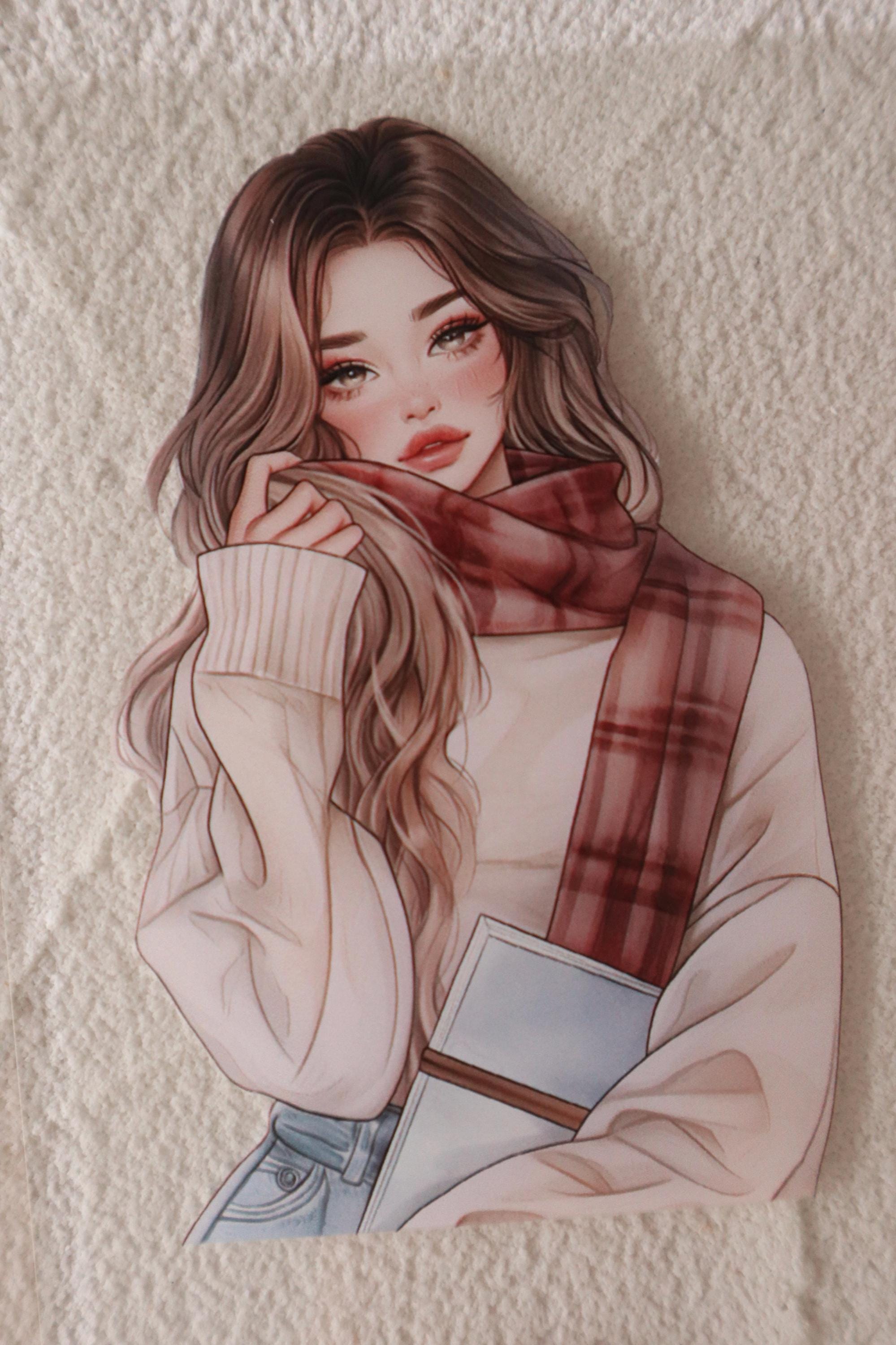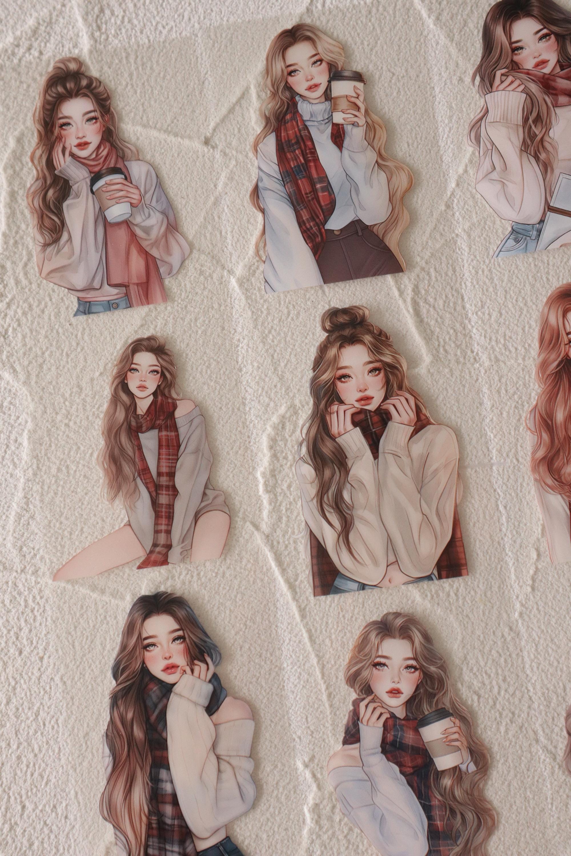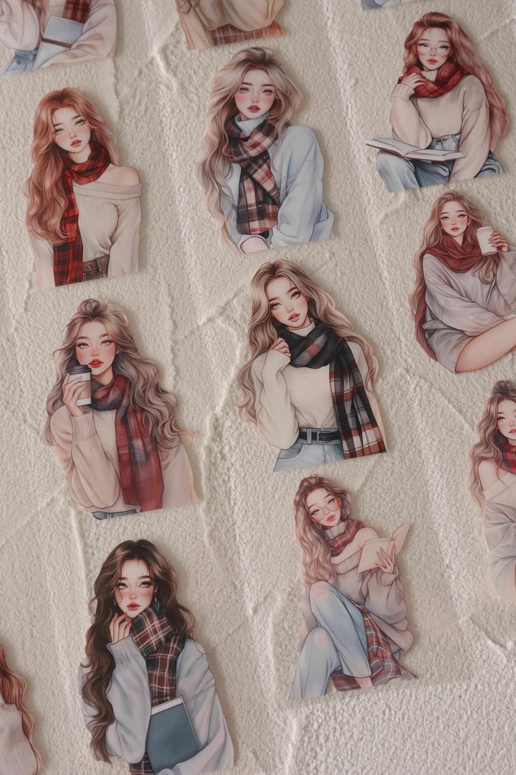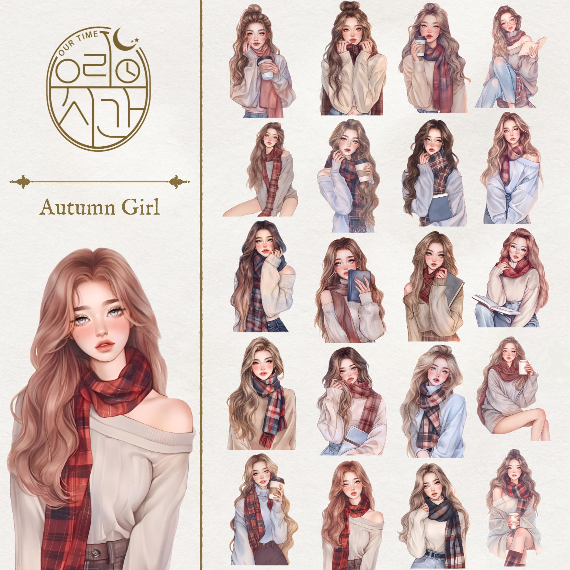 OURTIME) Autumn Girl Pet tape - 3D Glossy Printing 200cm(1 Loop)