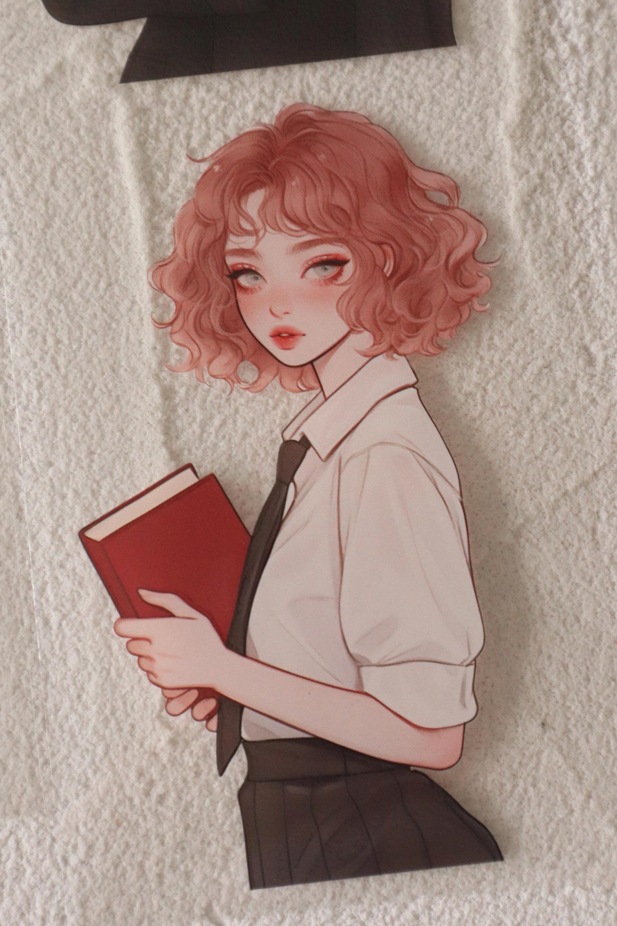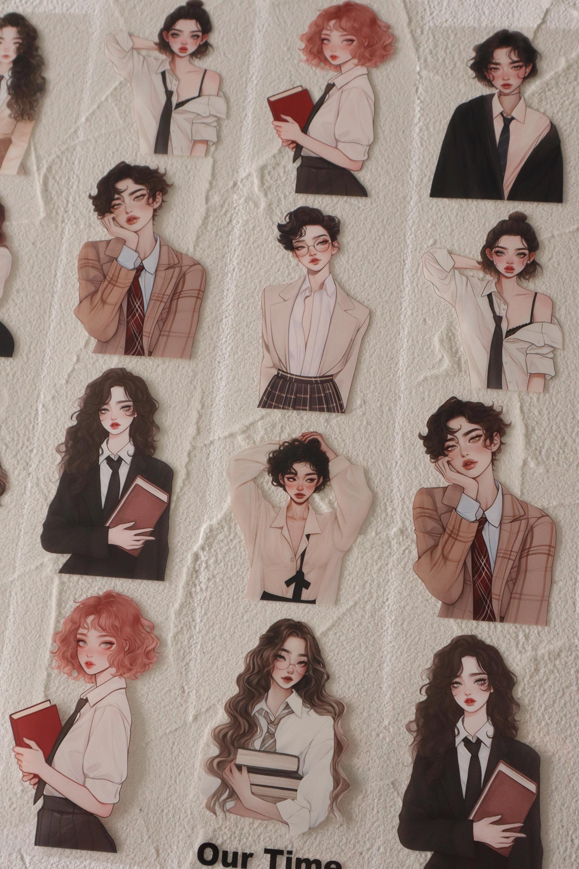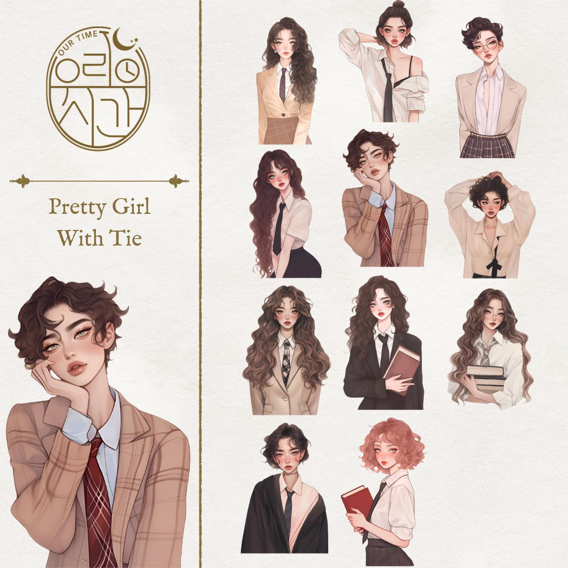 OURTIME) Pretty Girl With Tie Pet tape - 3D Glossy Printing 200cm(100cm x 2cut)