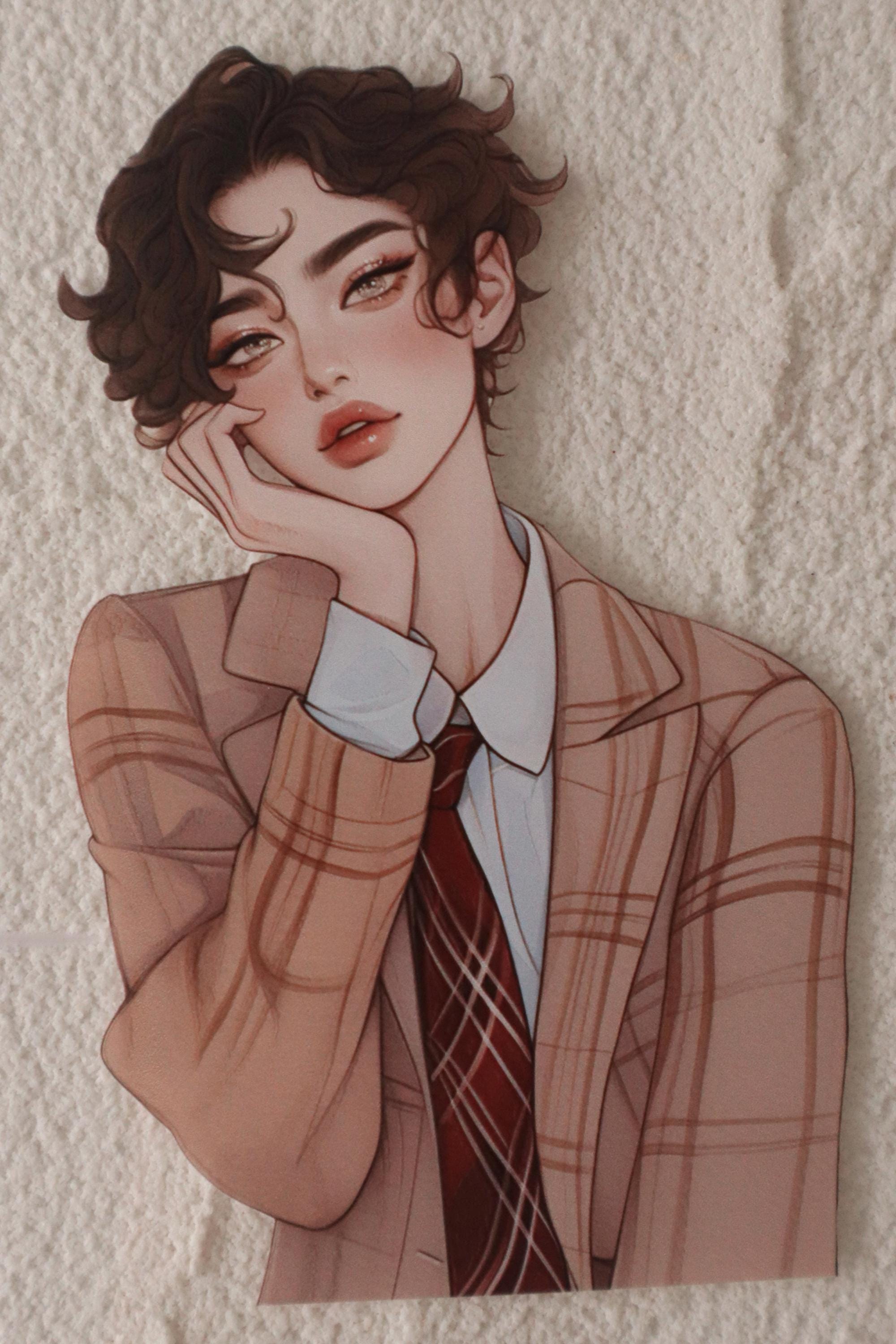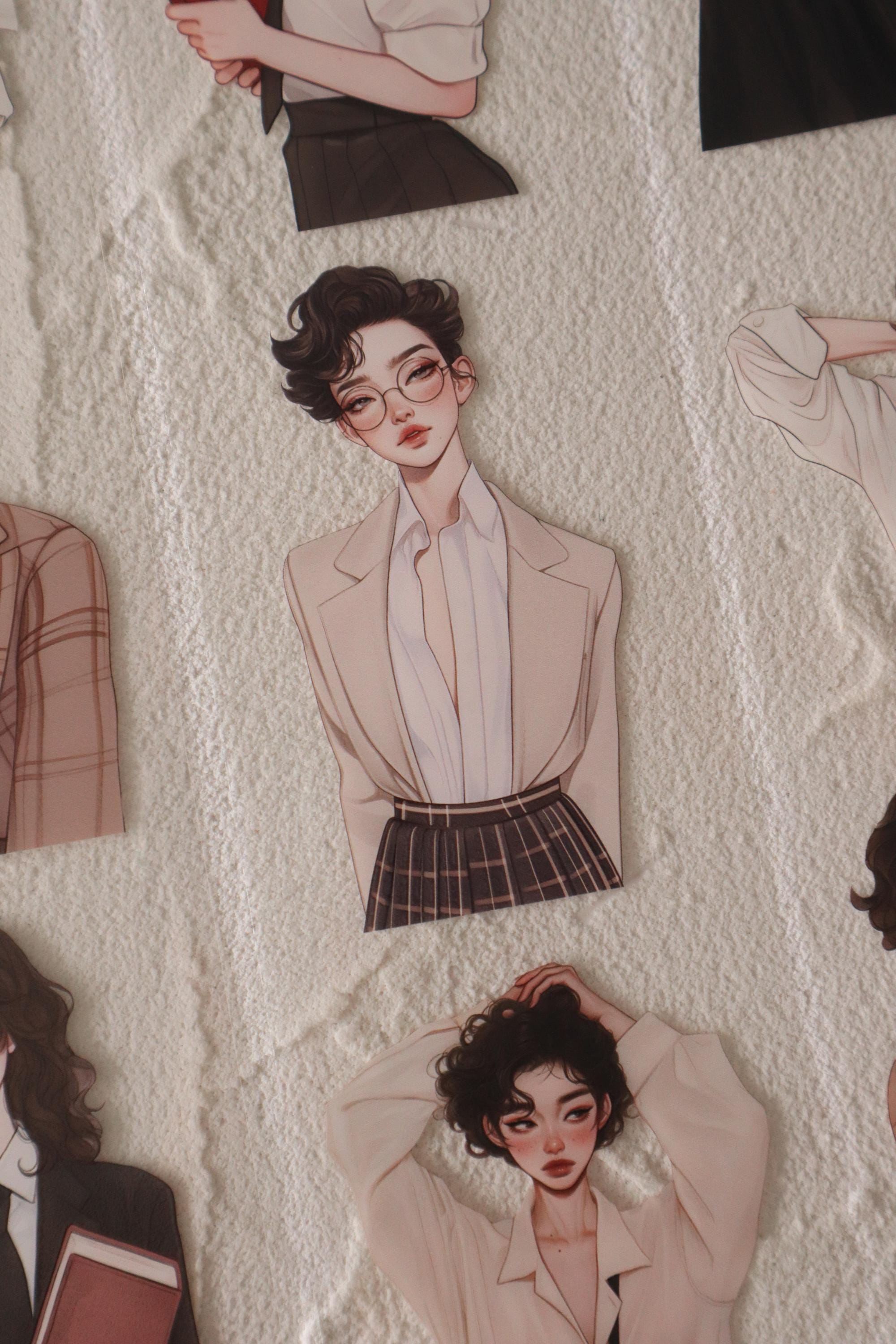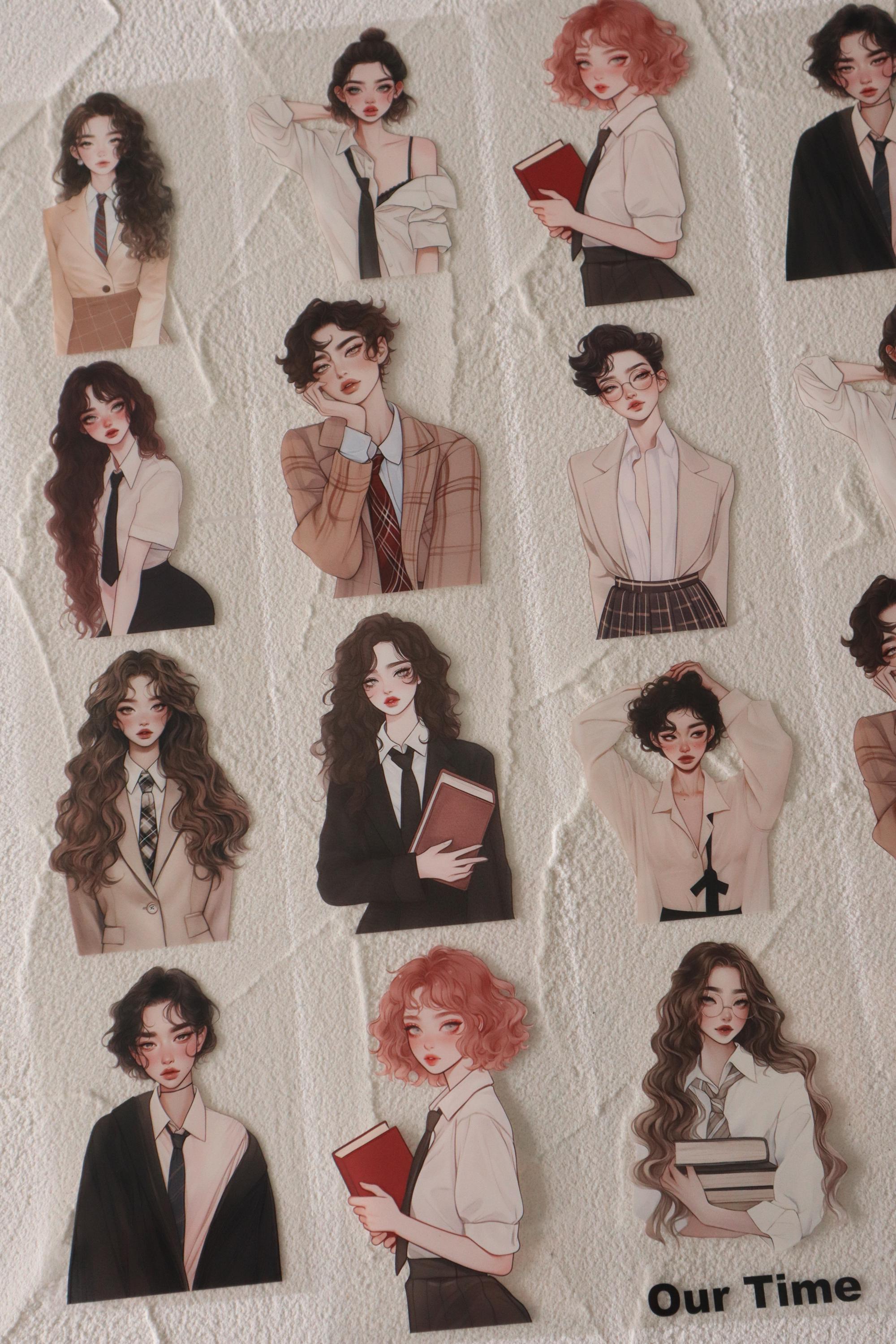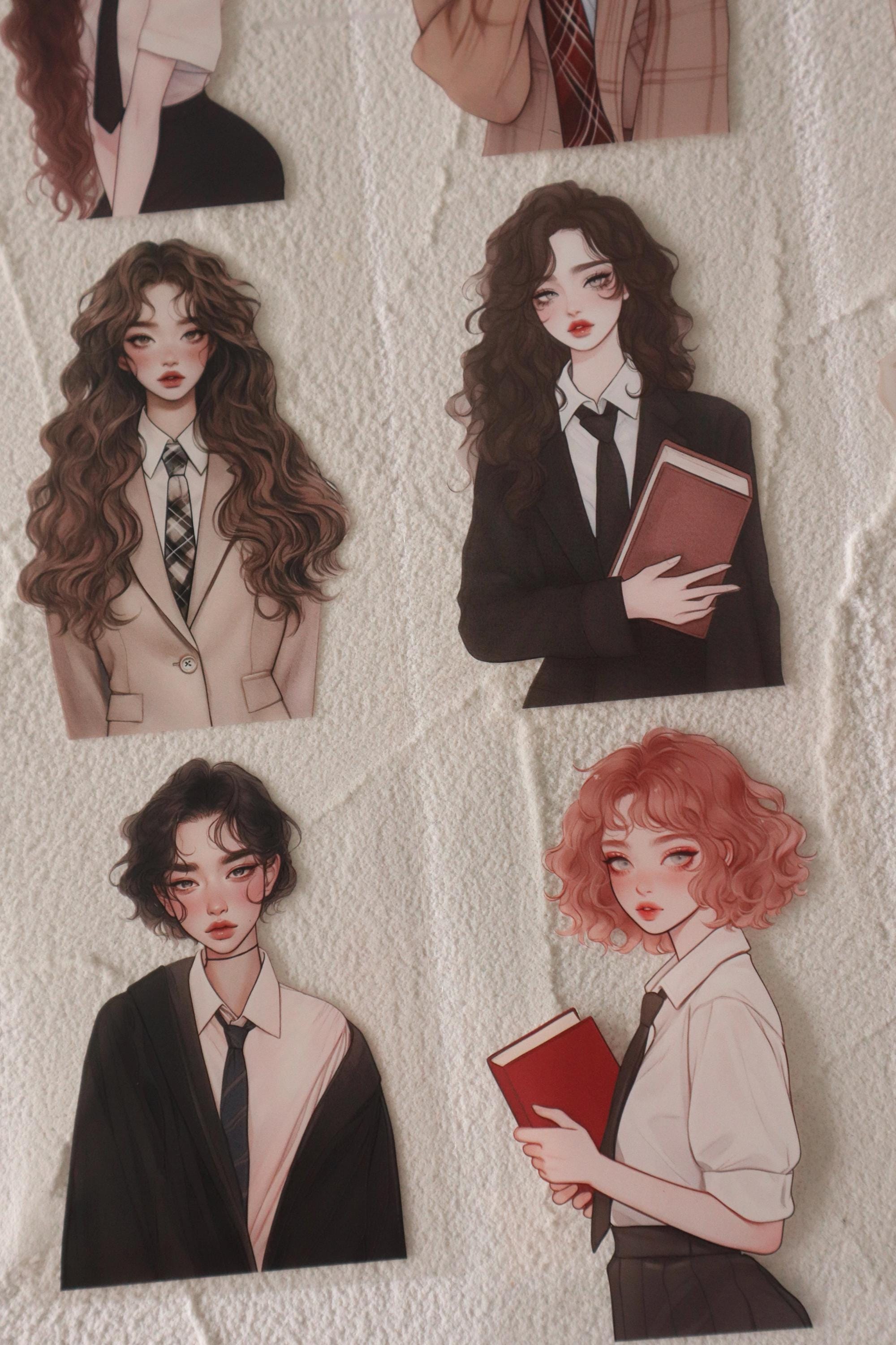 OURTIME) Pretty Girl With Tie Pet tape - 3D Glossy Printing 200cm(100cm x 2cut)