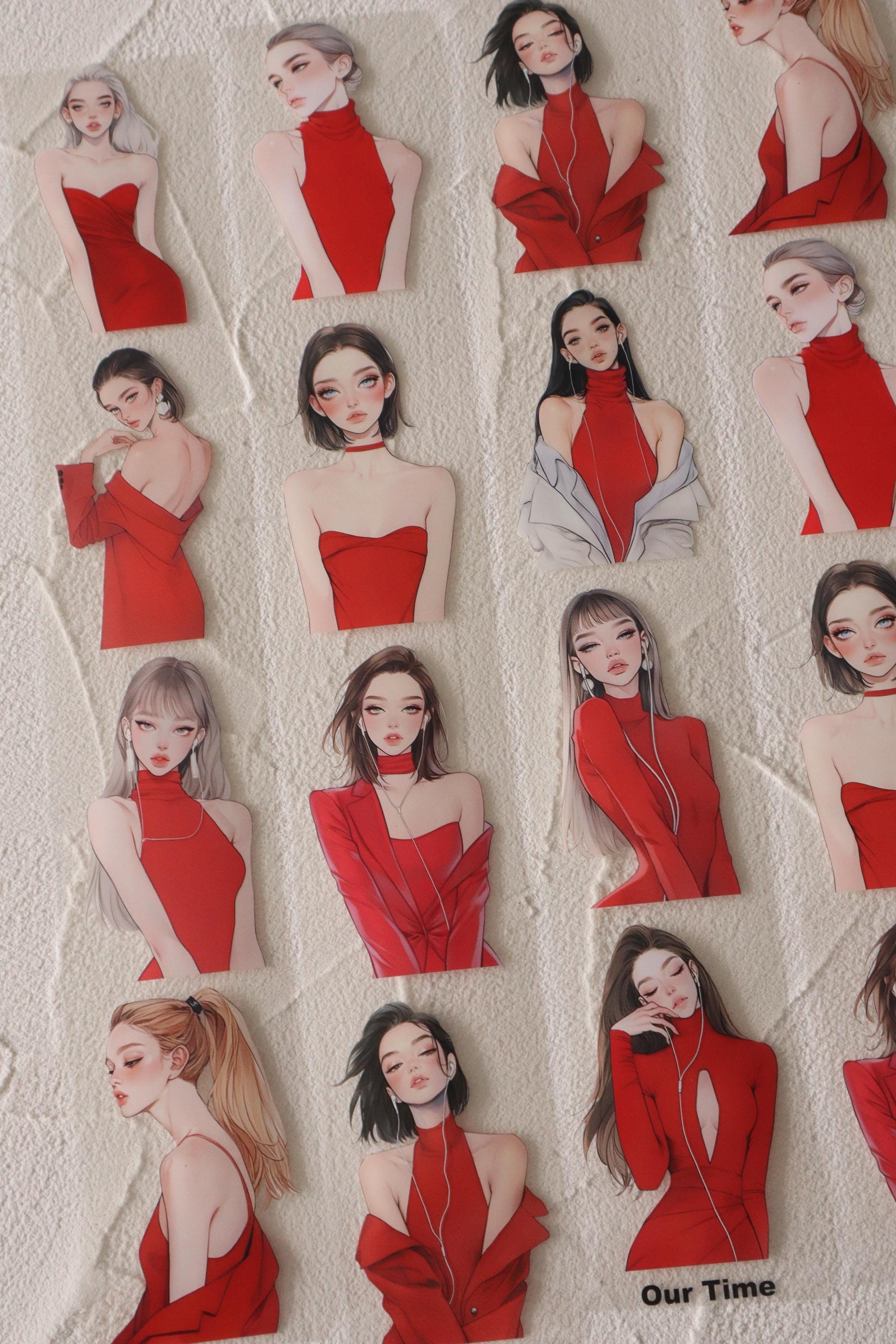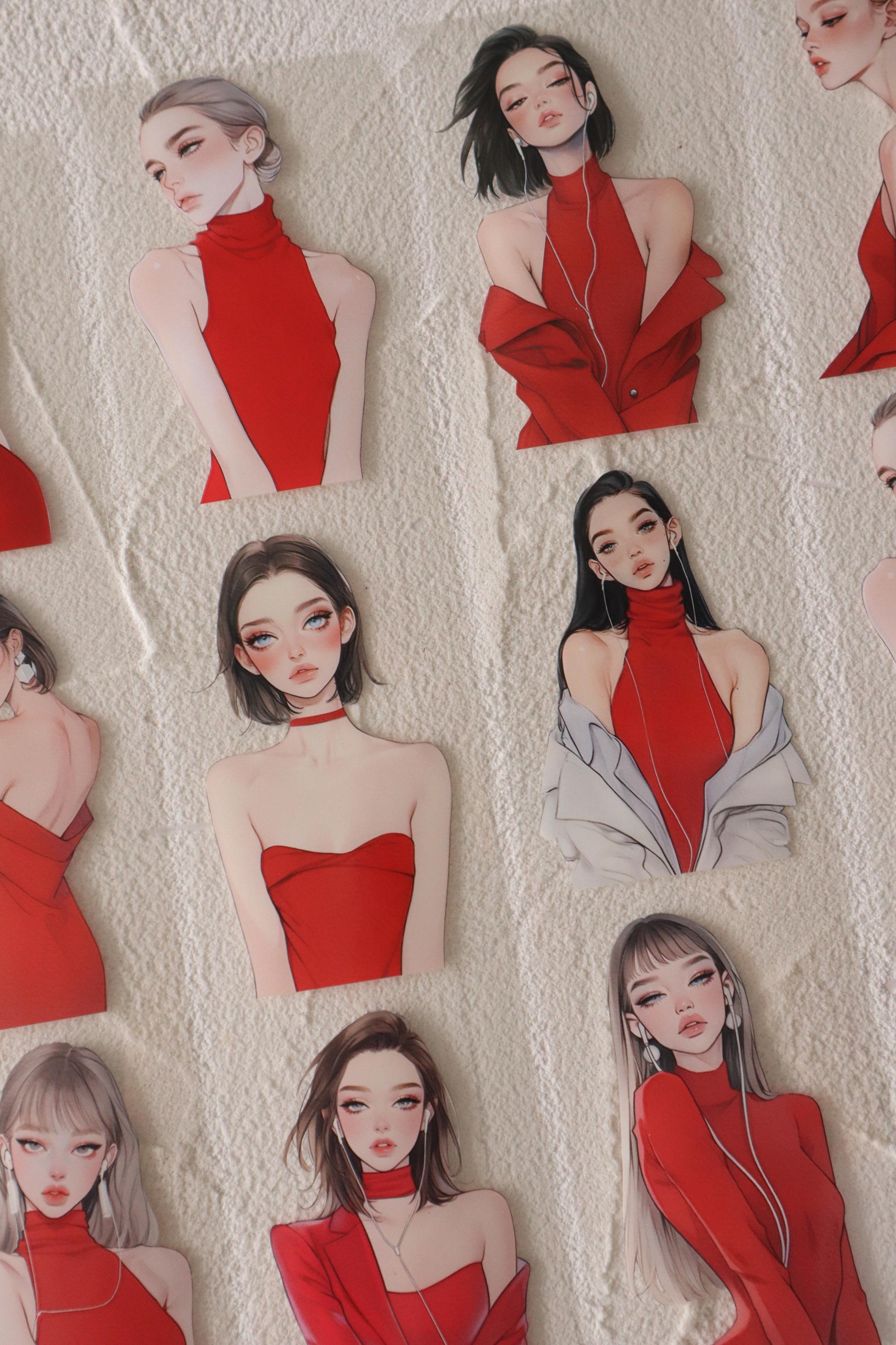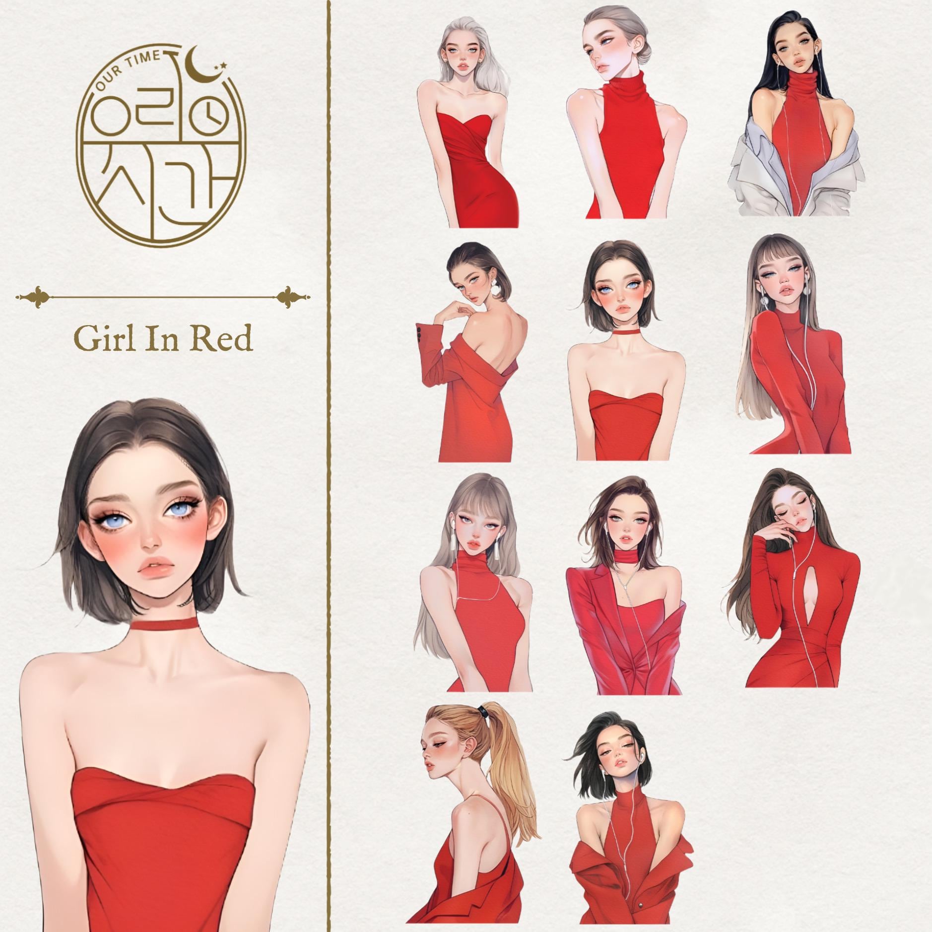 OURTIME) Girl In Red Pet tape - 3D Glossy Printing 200cm(100cm x 2cut)