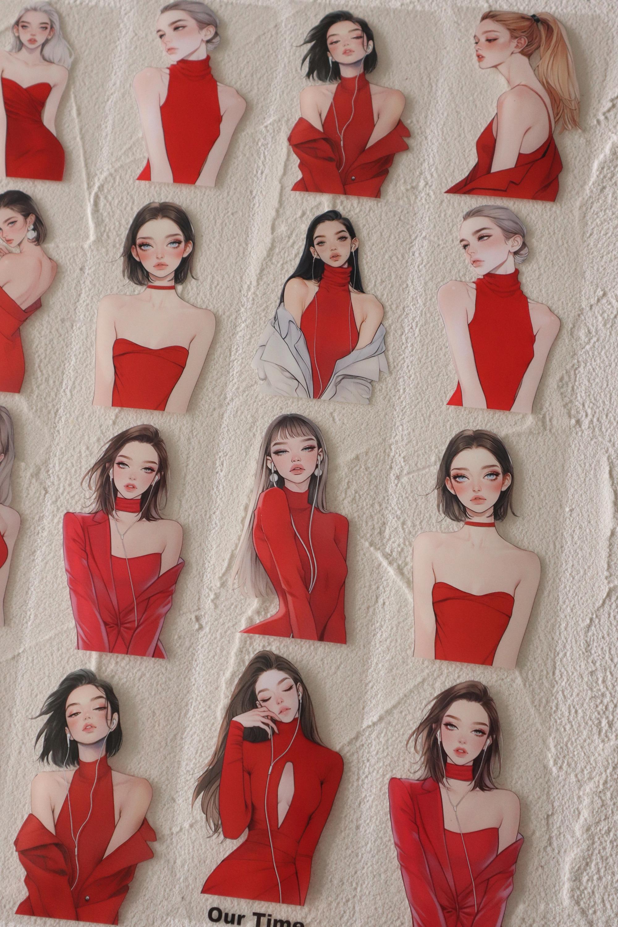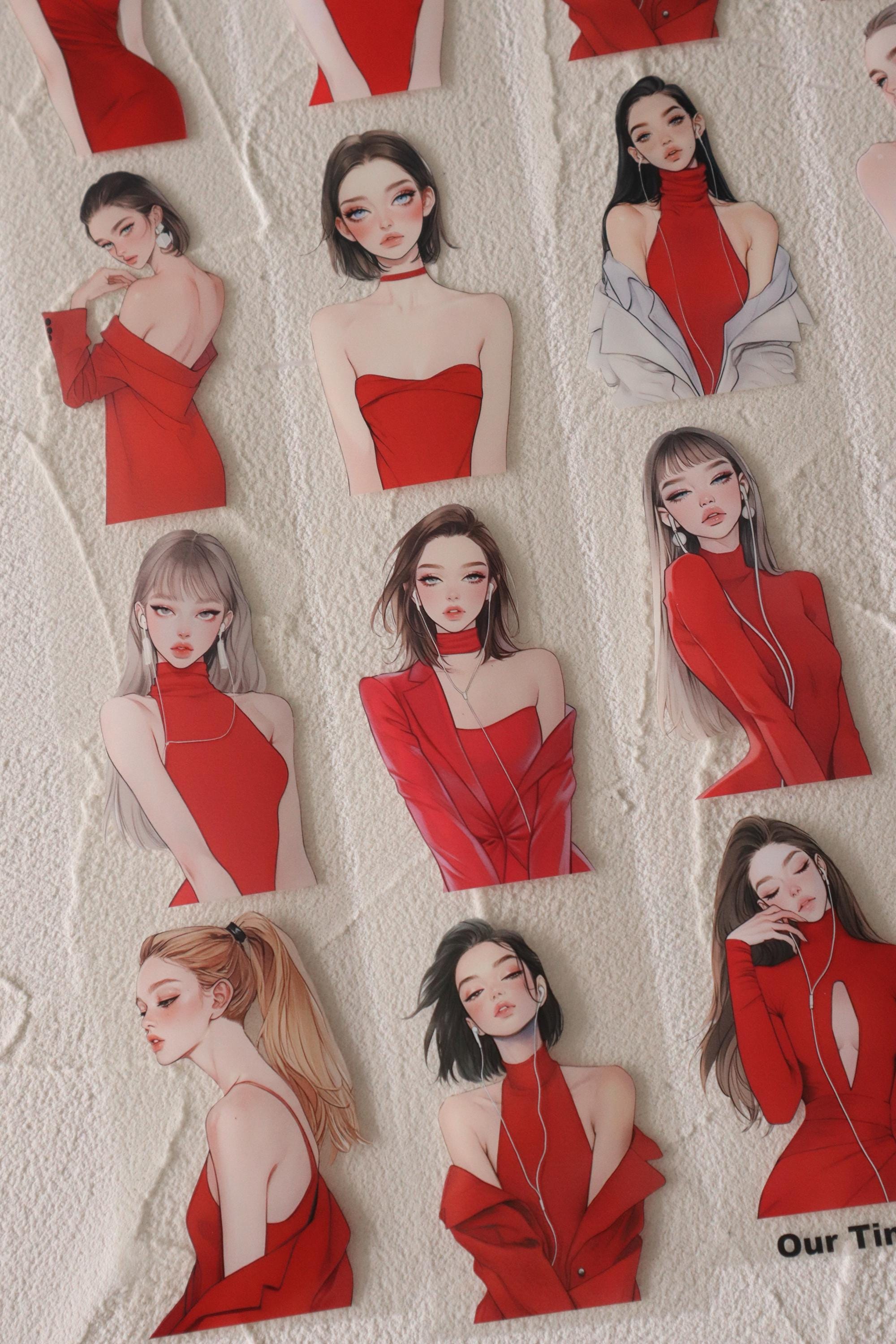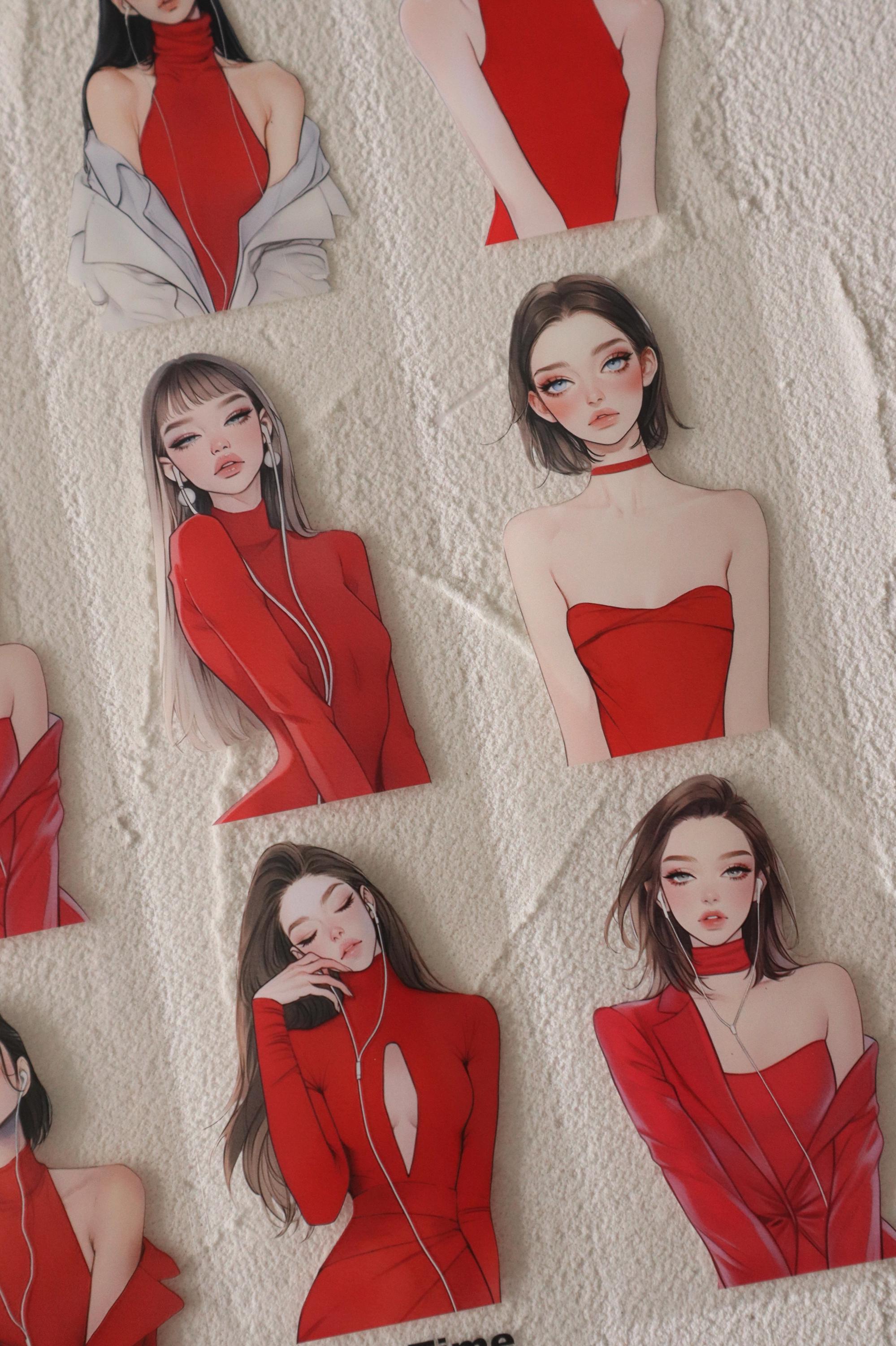 OURTIME) Girl In Red Pet tape - 3D Glossy Printing 200cm(100cm x 2cut)