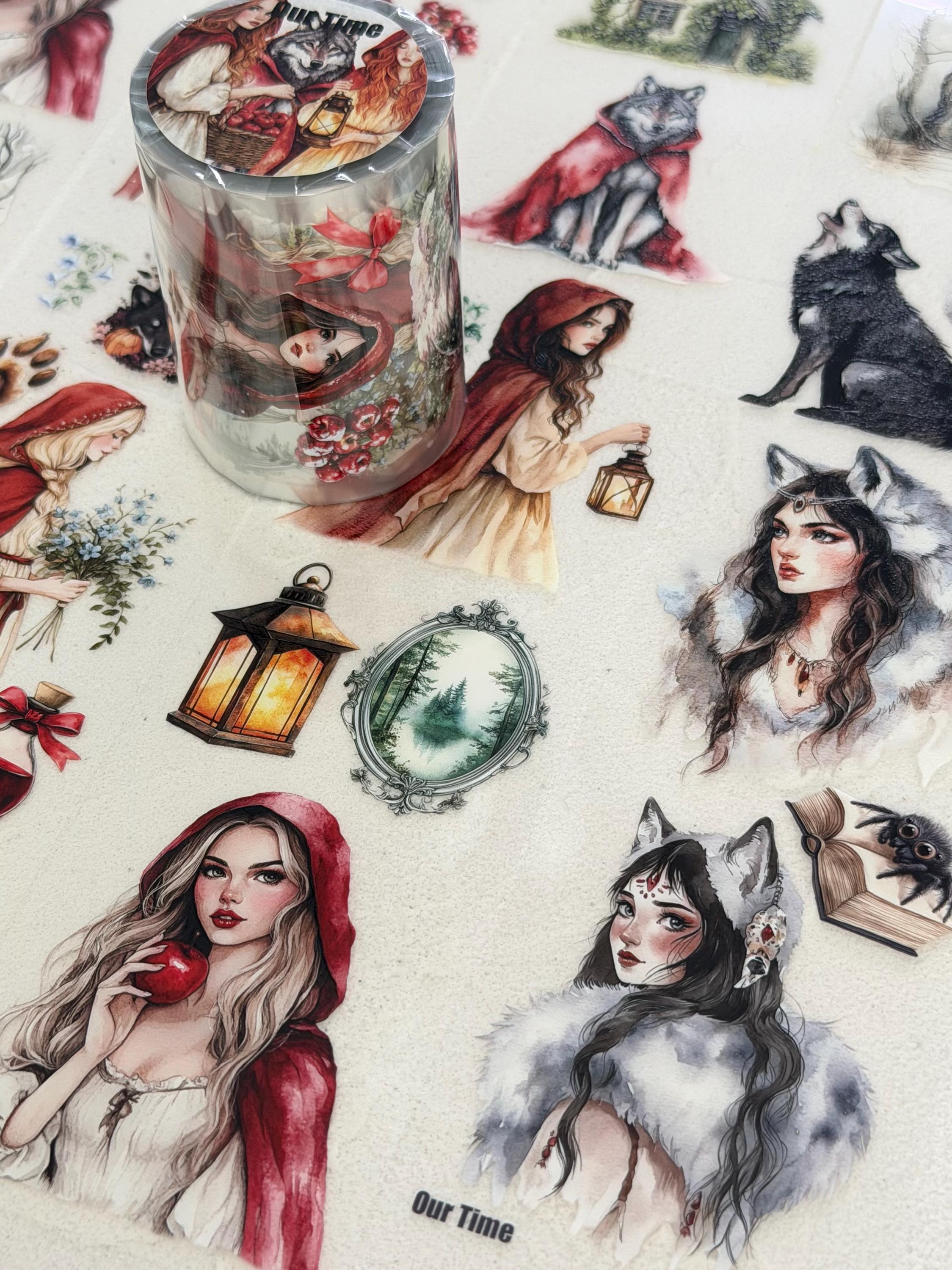 OURTIME) Red Cloak Pet tape - 3D Glossy Printing 200cm(100cm x 2cut)
