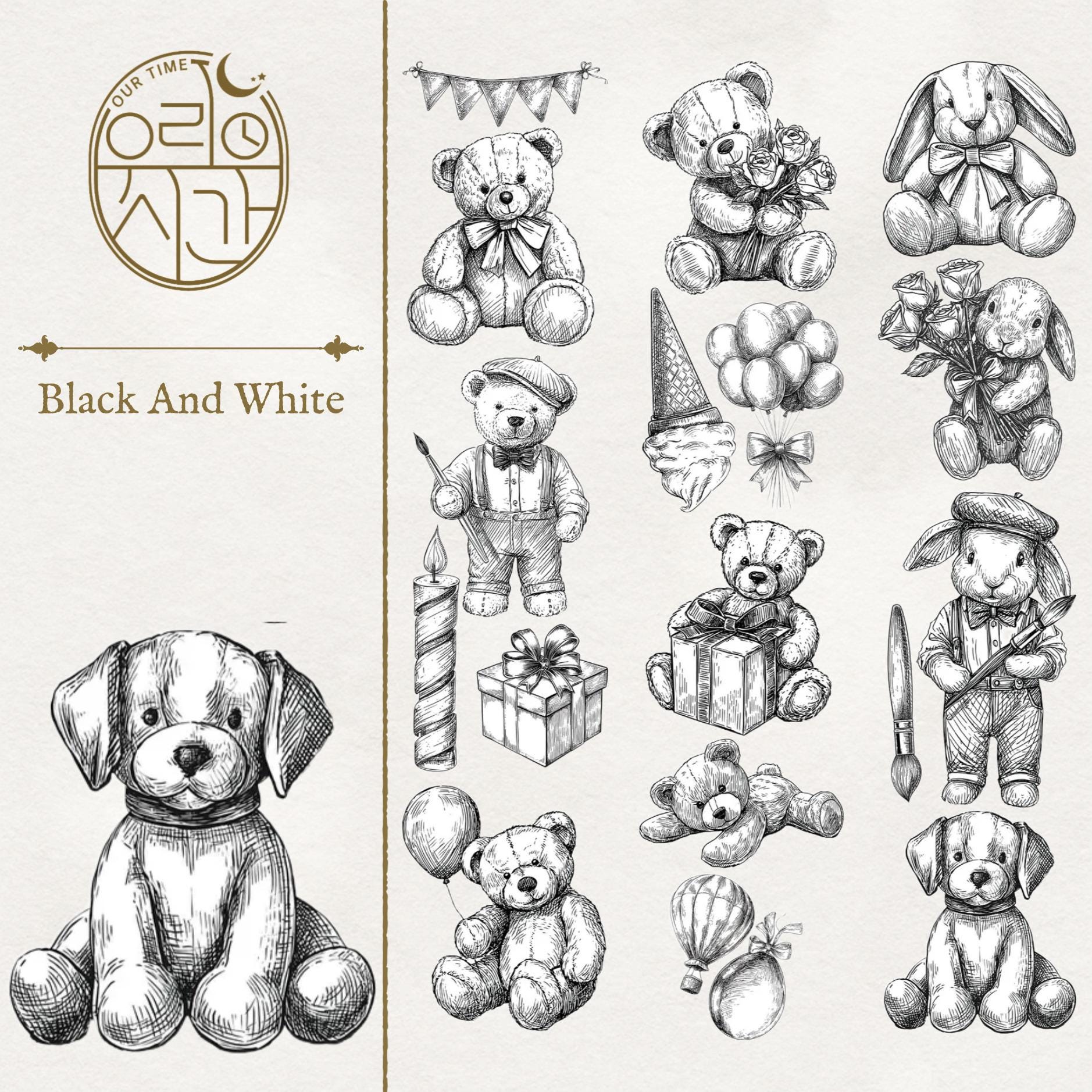 OURTIME) Black And White Pet tape - 3D Glossy Printing 200cm(100cm x 2cut)